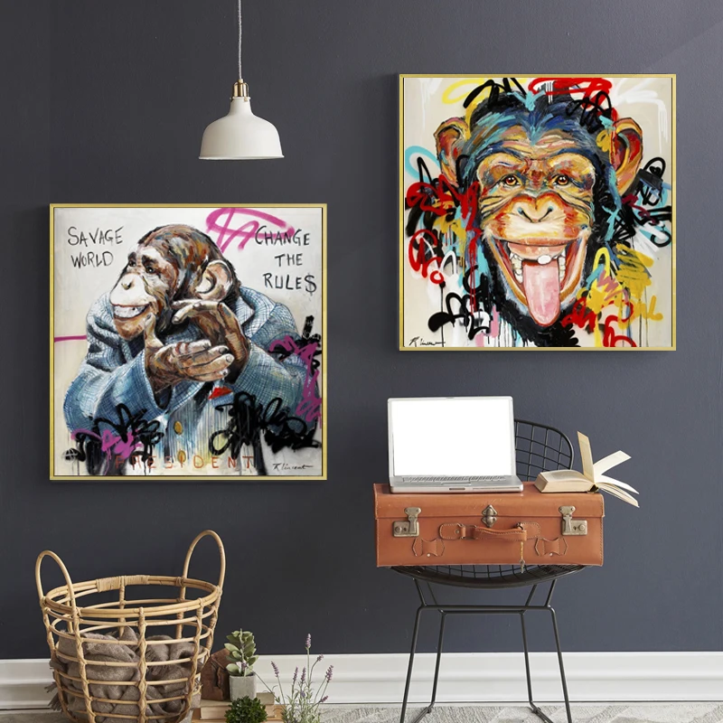 Граффити забавная обезьяна настенная Картина на холсте животные Поп...