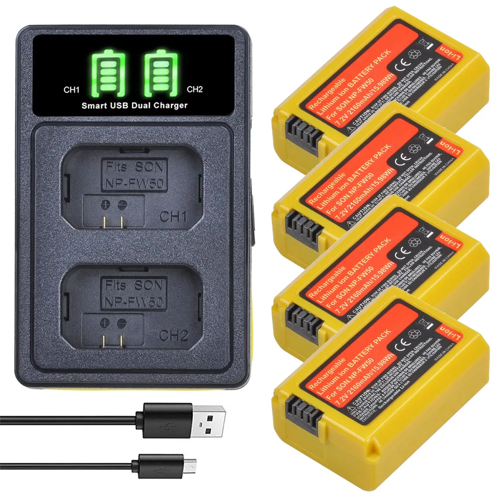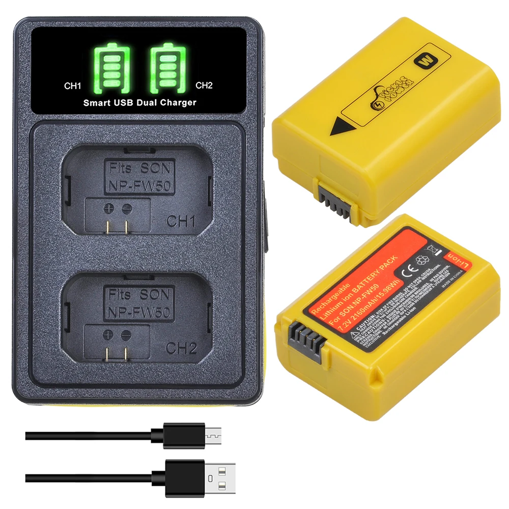2160mAh NP-FW50 батарея + LED двойной USB зарядное устройство для Sony a5000 A6000 A6500 A6300 a37 A7 A7II A7RII A7SII