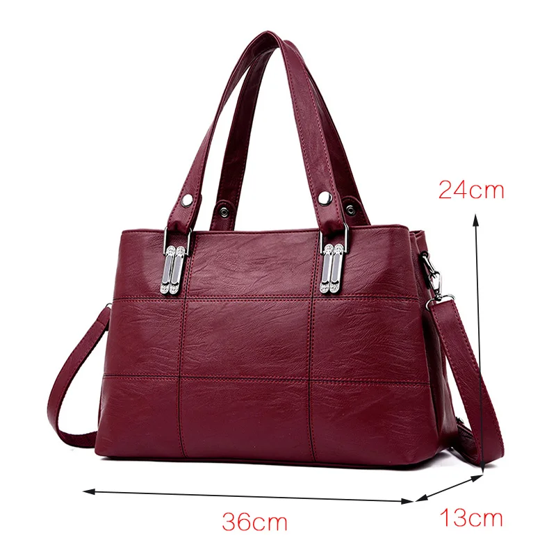 Брендовые женские кожаные сумки, женские сумки на плечо, женская сумка-мессенджер, Женская вместительная Повседневная Сумка-тоут черногокрасного цвета