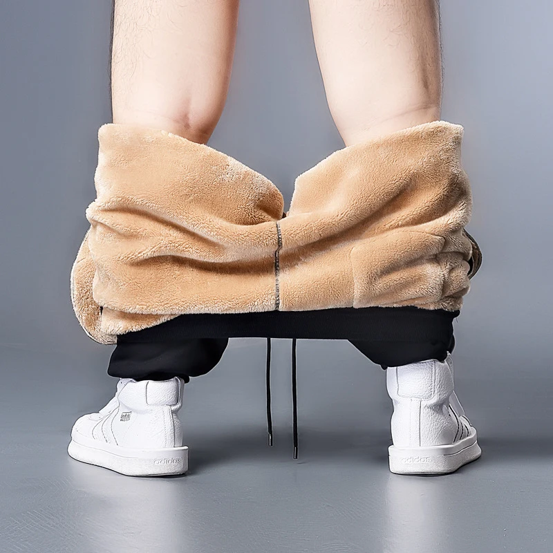 Мужские зимние плотные кашемировые брюки из овечьей шкуры, теплые м...