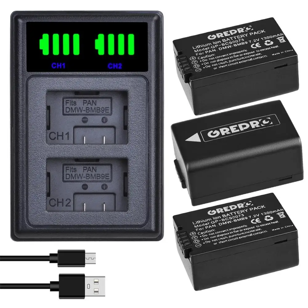 3-Pack DMW-BMB9 DMW-BMB9E BMB9 BMB9E батарея + Type-c светодиодный зарядное устройство для Lumix DMC FZ40K FZ45K FZ47K FZ48K FZ60 FZ70 FZ80 FZ100K