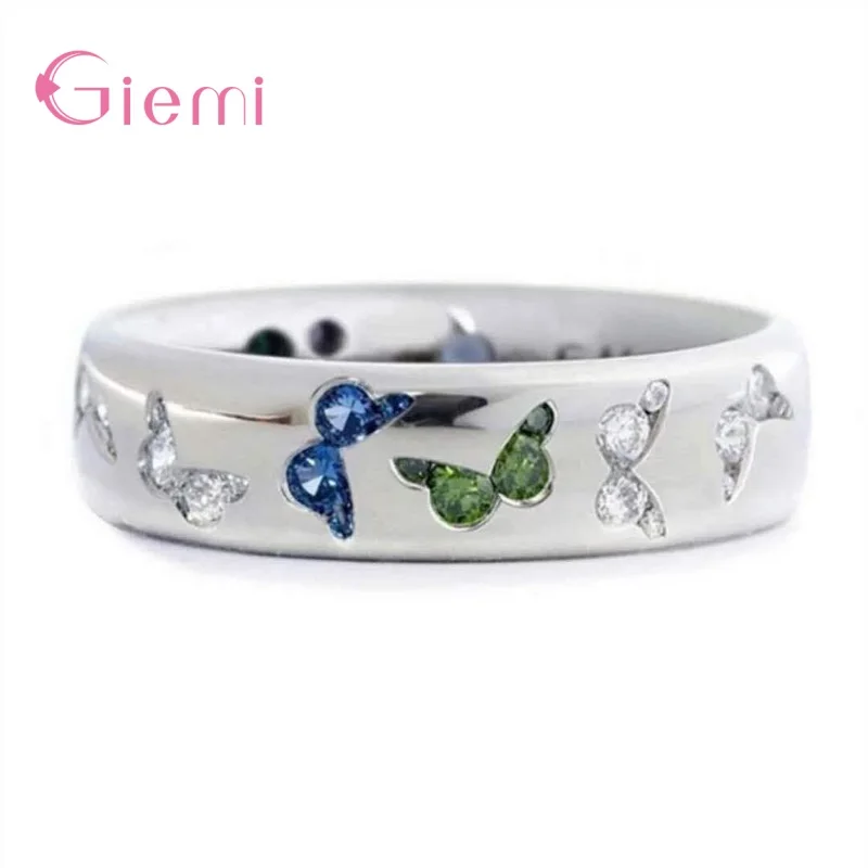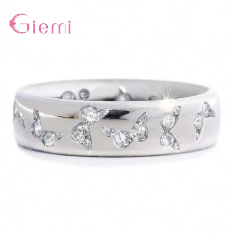 Подлинные кольца из стерлингового серебра 925 пробы с изображением бабочки, круглые кольца на палец для женщин, модные кольца, ювелирные изделия, свадебные кольца на палец