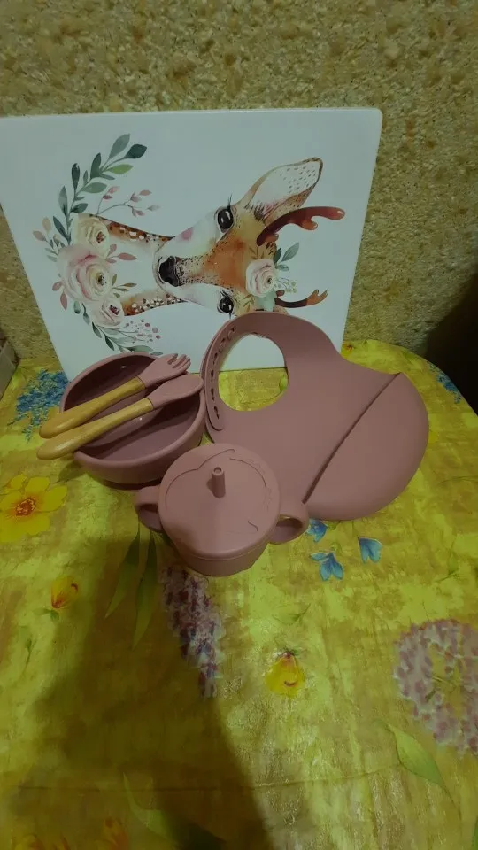 Очень классный набор посуды, все выглядит, как на фото. Тарелочка удобно приклеивается к столику, ребенок не может ее опрокинуть. Из кружки нелегко пролить жидкость, можно назвать кружку непроливайкой. Цвет очень нежный и приятный. Заказ пришел быстро, даже раньше заявленной даты. Очень довольна покупкой. Рекомендую