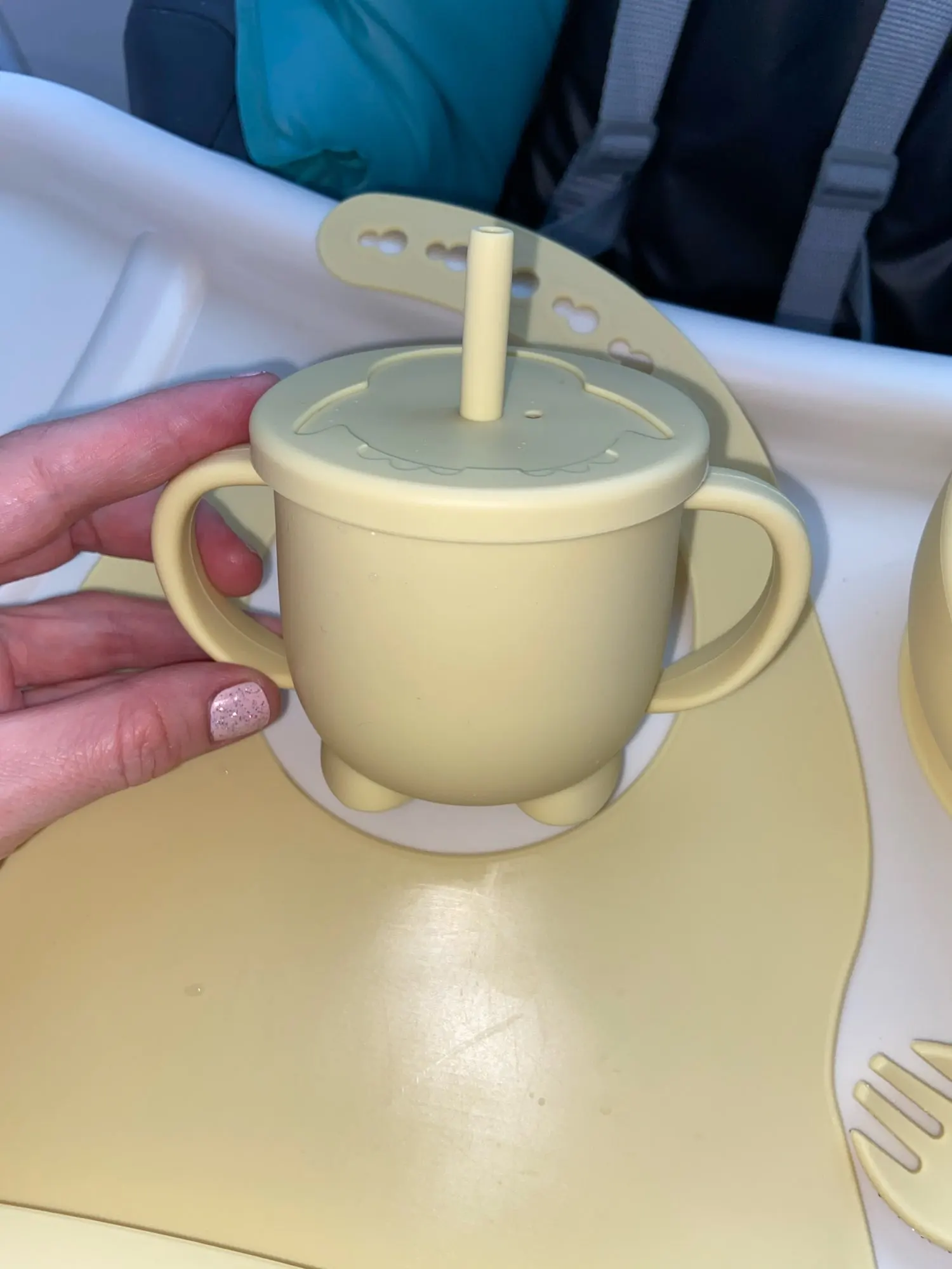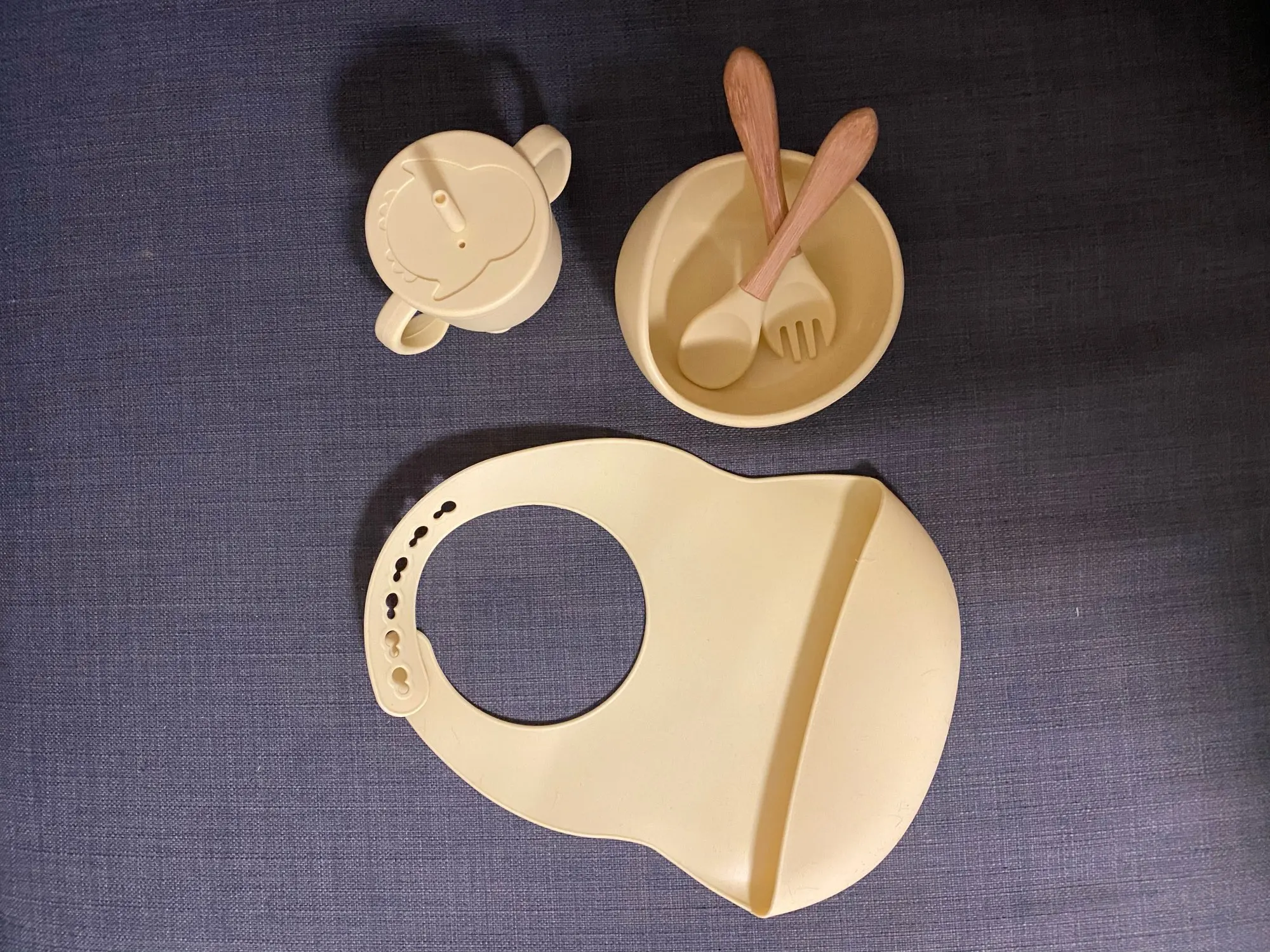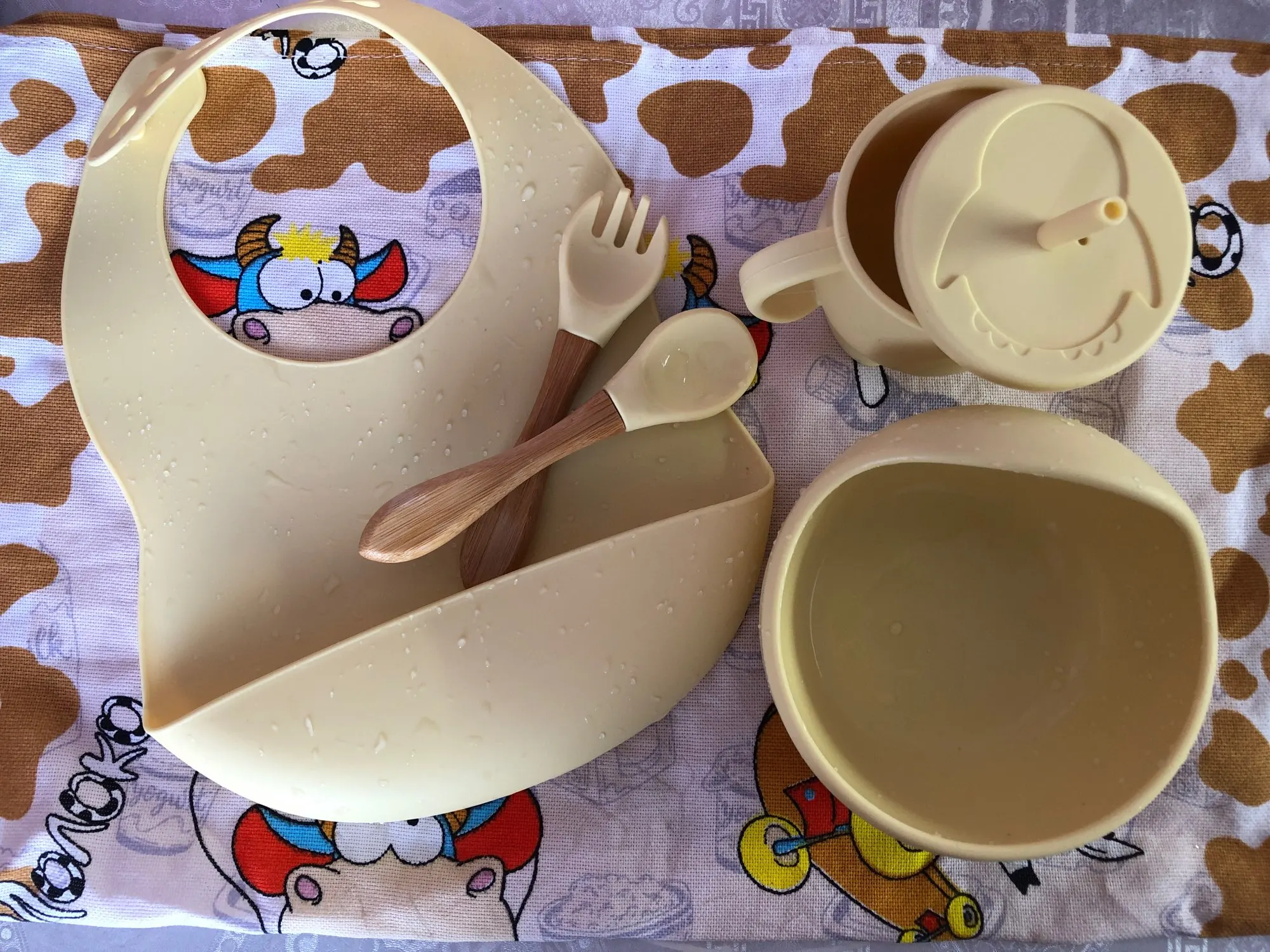Очень хороший качественный набор. По стоимости примерно также как в интернет-магазинах. Стаканчик с трубочкой мы пока использовать не будем, так как рано, он 8+месяцев. Вилка правда бесполезная на неё ничего не наколоть, а ложечка хорошая для малыша, достаточно мягкая