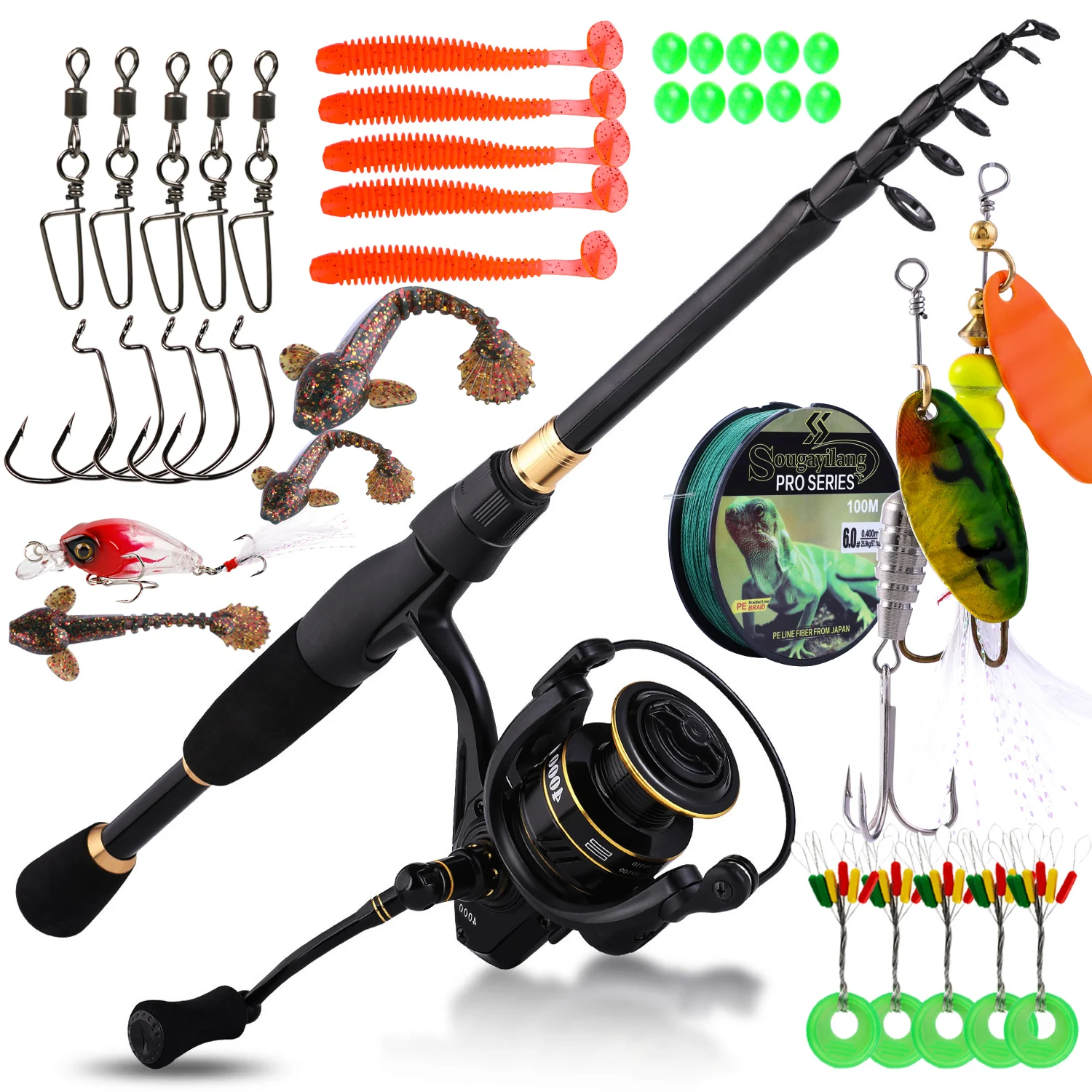 Sougayilang удочка и Катушка комбо набор с телескопическим спиннингом и спиннингом катушки рыболовные лески крючки полный комплект