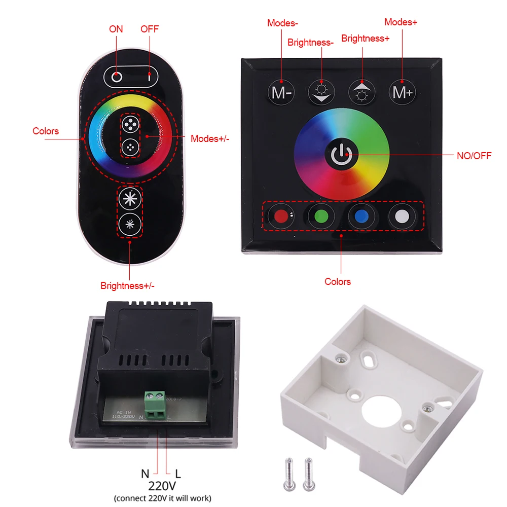 RGB Светодиодная лента 110 В 220 В настенный сенсорный RF пульт дис...