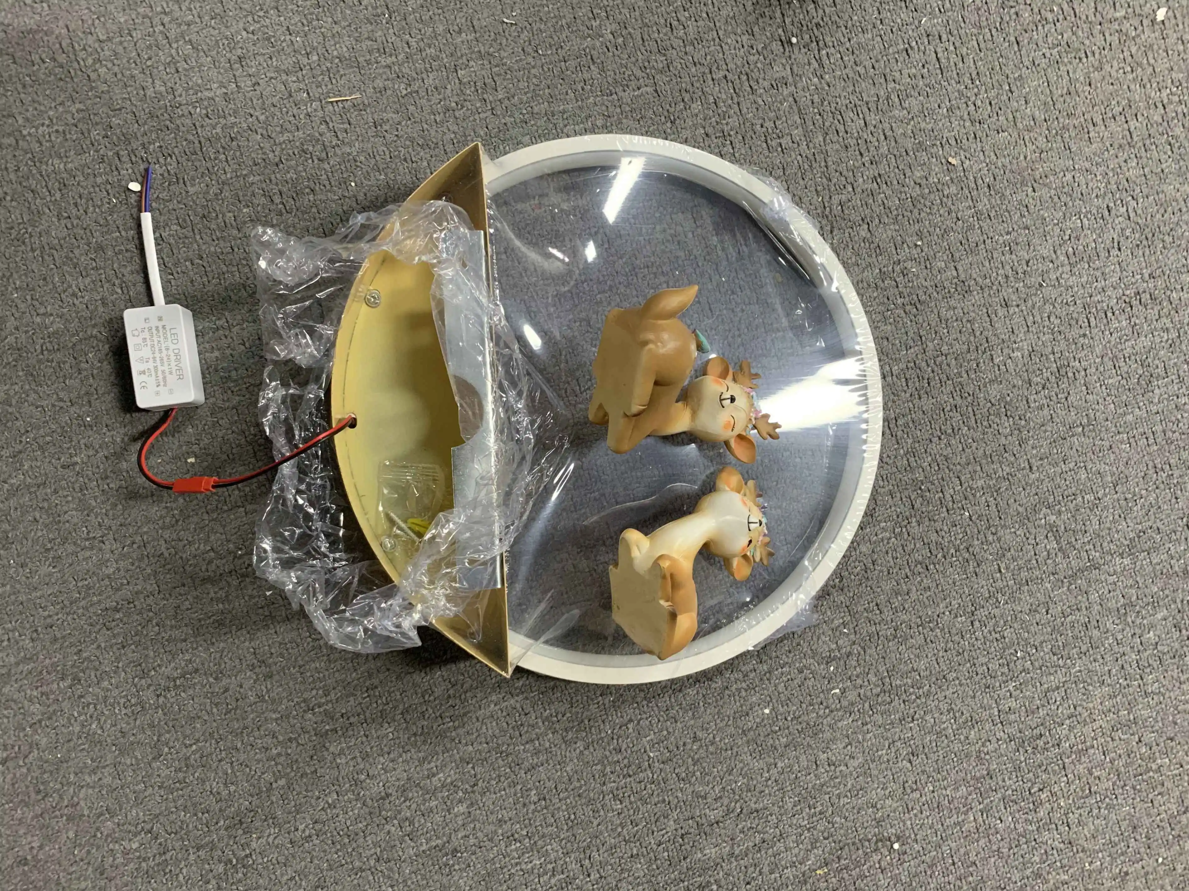 Посылка пришла очень быстро до Москвы, недели за 2-3. Всё упаковано в пупырчатую плёнку, каждая деталь защищена. Ободок бра ровный, не помятый. Олени из глины, на самом бра никак не закреплены, можно передвигать их, как захочется или вовсе снять. Дети в восторге. Свет заказала теплый жёлтый, приятный, яркий. Оленят можно убрать и ставить что-то своё на рамку бра. Очень довольна товаром! Фото ниже. С продавцом не общались.