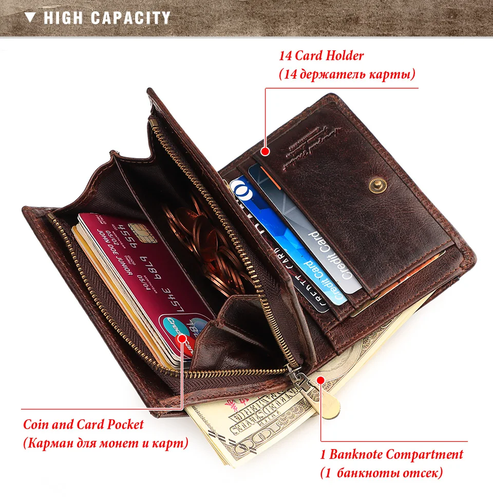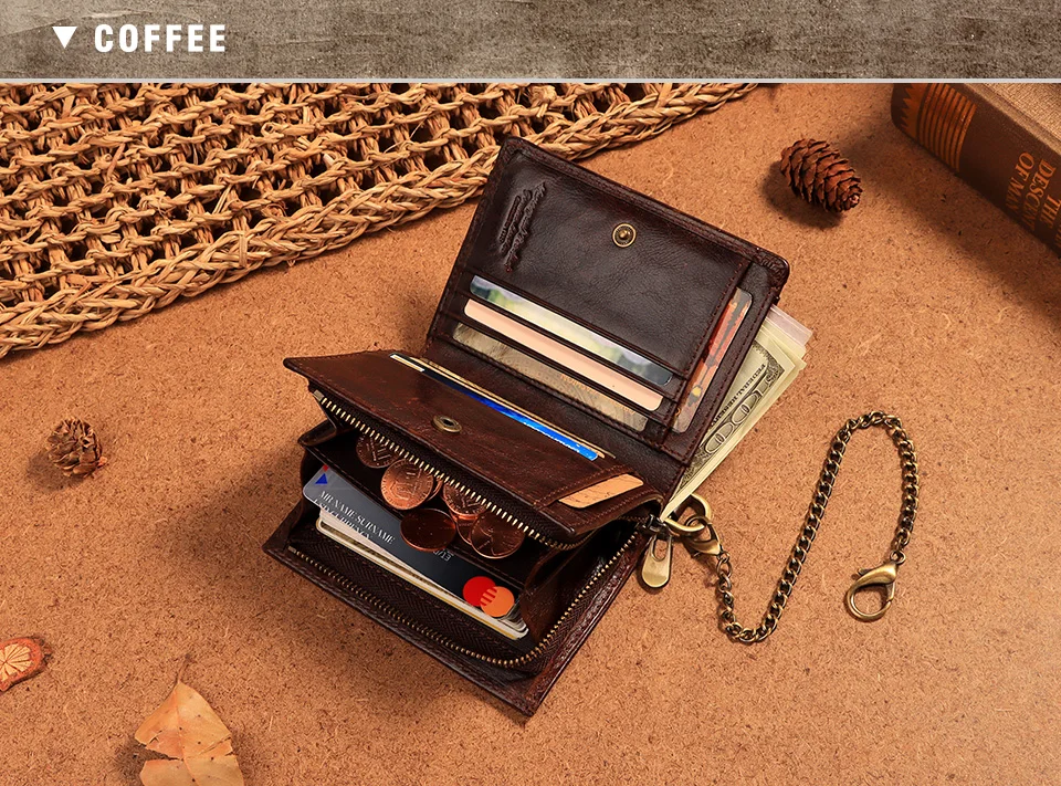 KAVIS мужские кошельки из 100% натуральной коровьей кожи с радиочас...