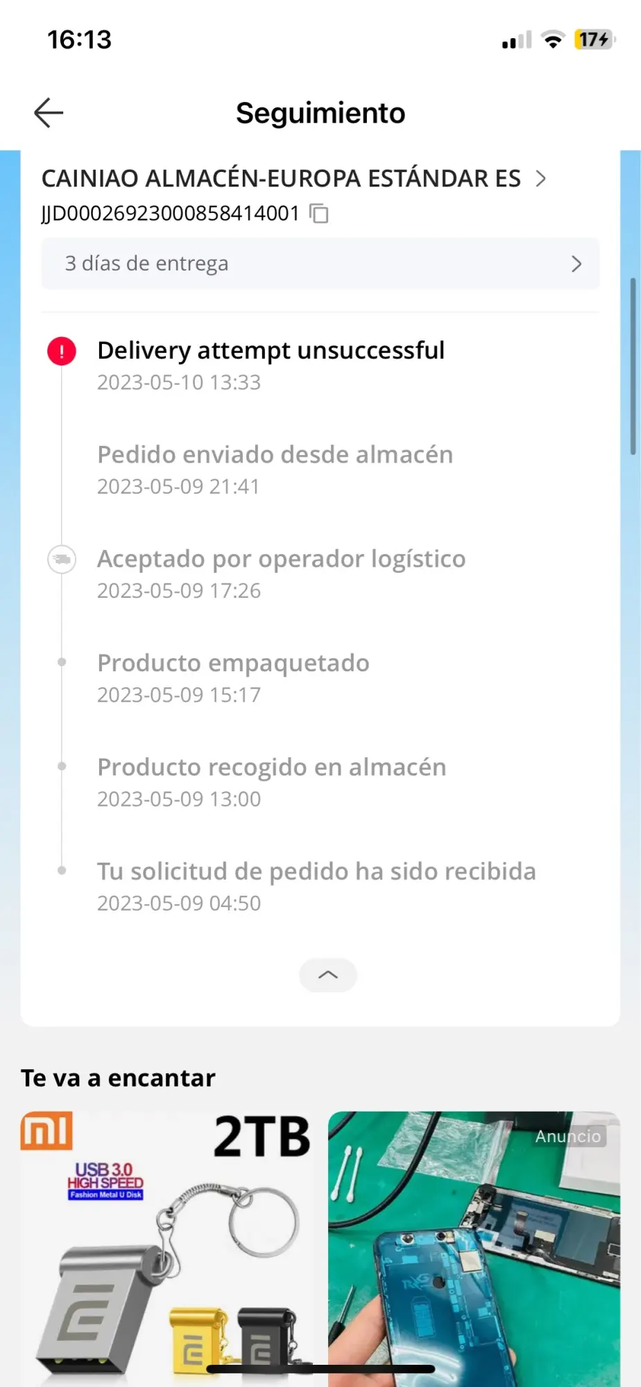 Страна: ES Color: X Incell Ships From: SPAIN Доставка: CAINIAO WAREHOUSE STANDARD SHIPPING 06.04.2023