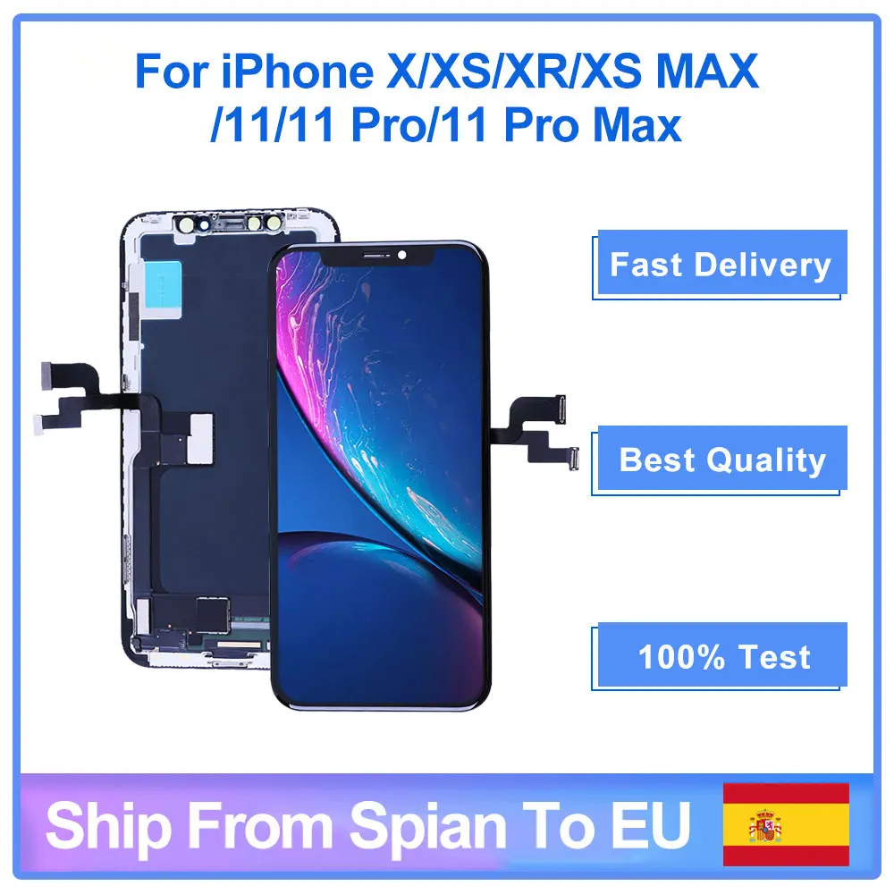 ЖК-экран для iPhone X XR XS MAX OLED, сменный ЖК-экран с 3D сенсорным дигитайзером в сборе, 11, 12 Pro Max Incell Pantalla