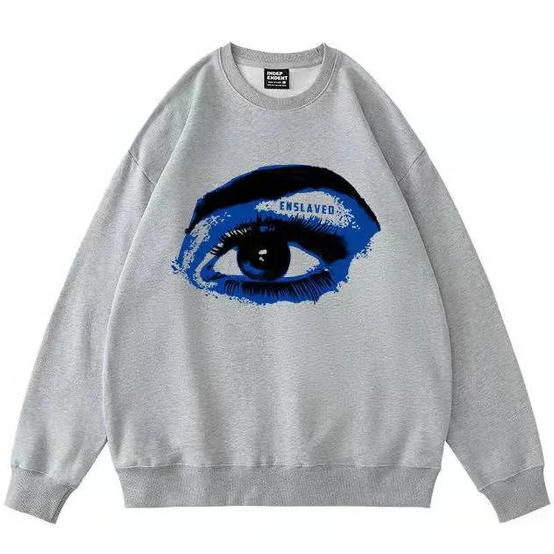 С принтом глаза, цвет: белый, черный, с соединением внакрой свободная толстовка с круглым вырезом на шее для женщин толстовки в уличном стиле для девочек; Брендовый дизайн; Сезон осень; Модные размера плюс BF