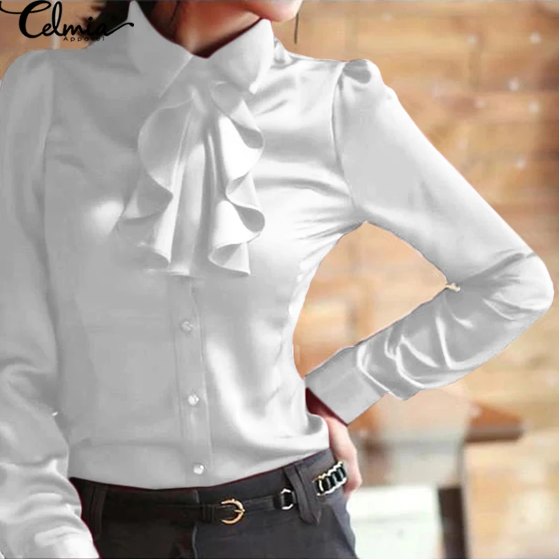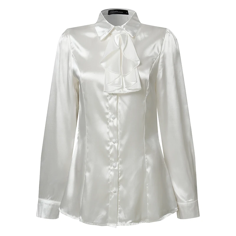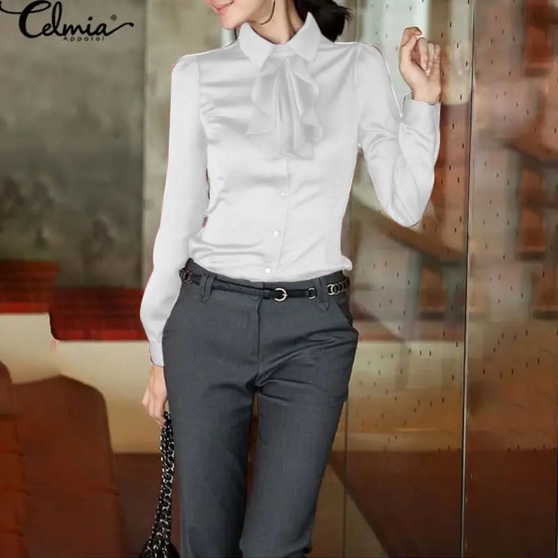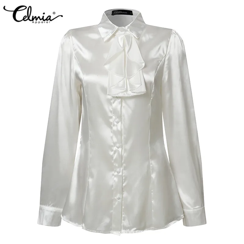 Модная женская атласная блузка Celmia 2021, топы с длинным рукавом,...