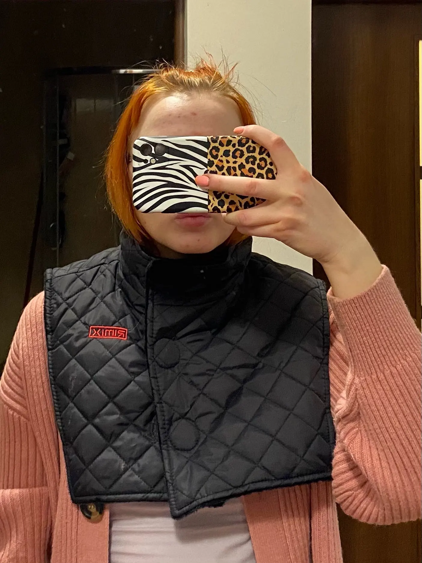 Хороший воротник, точно греет, застегивается на женскую сторону, хотя на фото выглядит как мужской и только чёрного цвета. В любом случае, одариваемый сказал, что воротник теплый и уютный