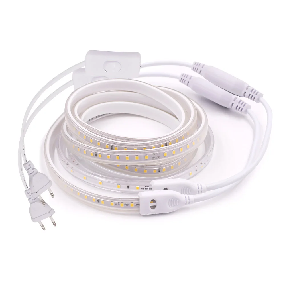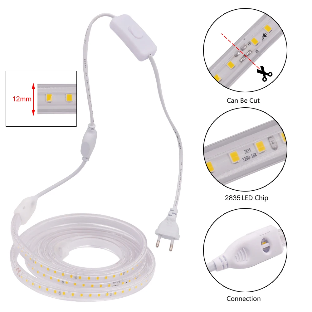 Светодиодная светильник 220 В гибкая светодиодная лента SMD2835 120 Светодиодная водонепроницаемая светодиодная лента с вилкой переключателя европейского стандарта для украшения дома
