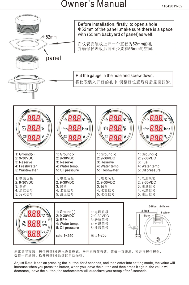-Давление масла: 0-10 бар (датчик давления: 10-184ом)