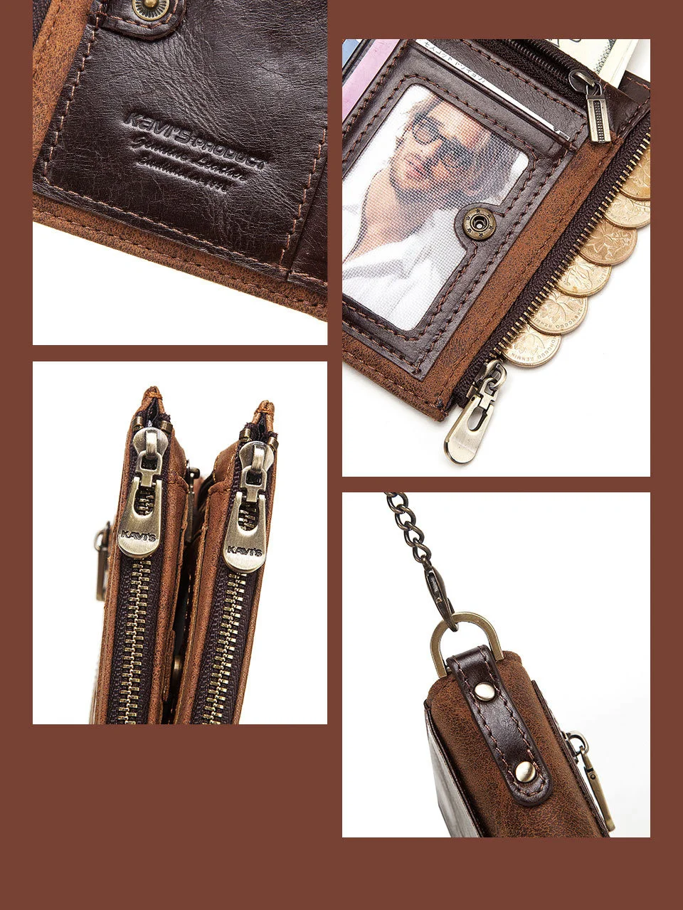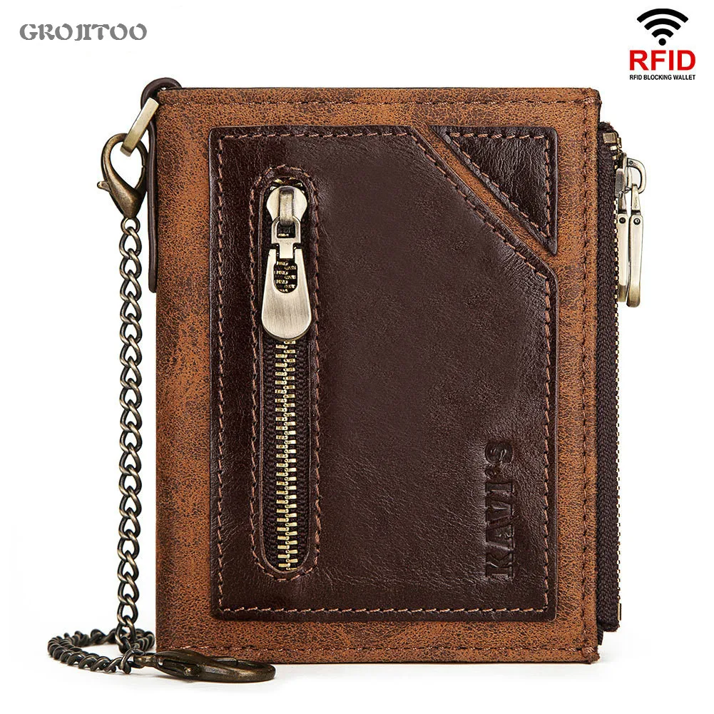 GROJITOO мужской кошелек Анти-кражи кисточки кожаный бумажник с радиочастотной идентификацией многофункциональный двойной молнии Вертикальный чехол-портмоне с откидной модный кошелек для мелочи