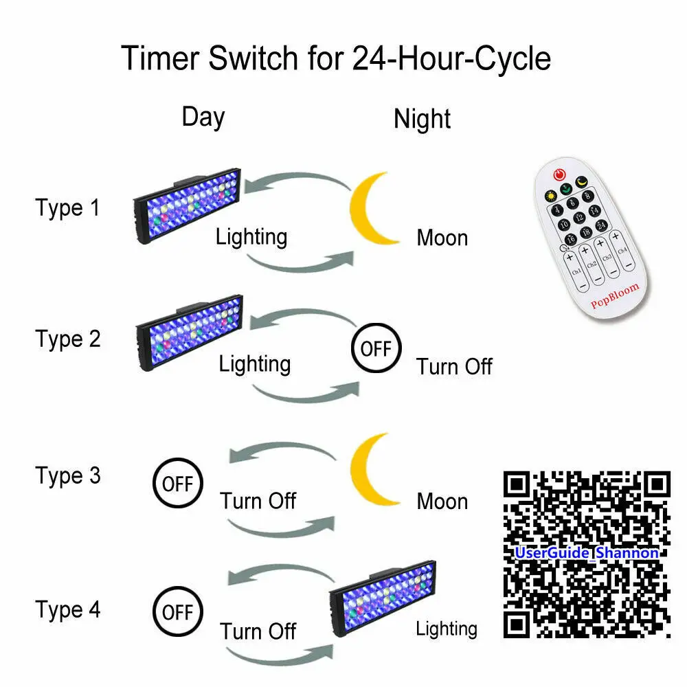 -Умное управление: один пульт может понять: 3 предустановки режима, 24 часа таймера цикла, 4 канала яркости регулируется