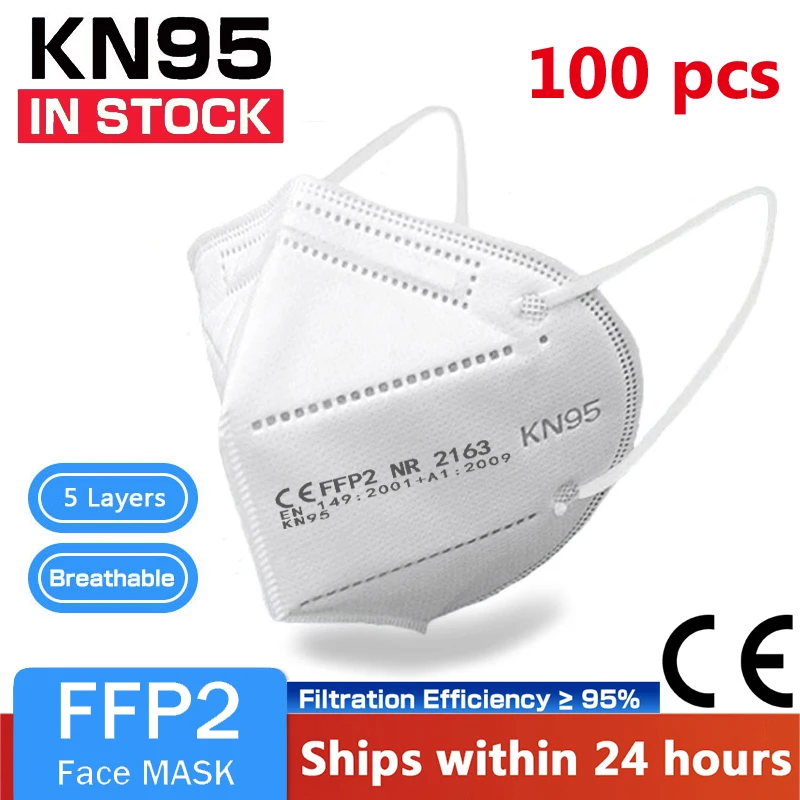 100 шт. FFP2 маски для лица KN95 маска для лица 5-Слои респиратор ф...