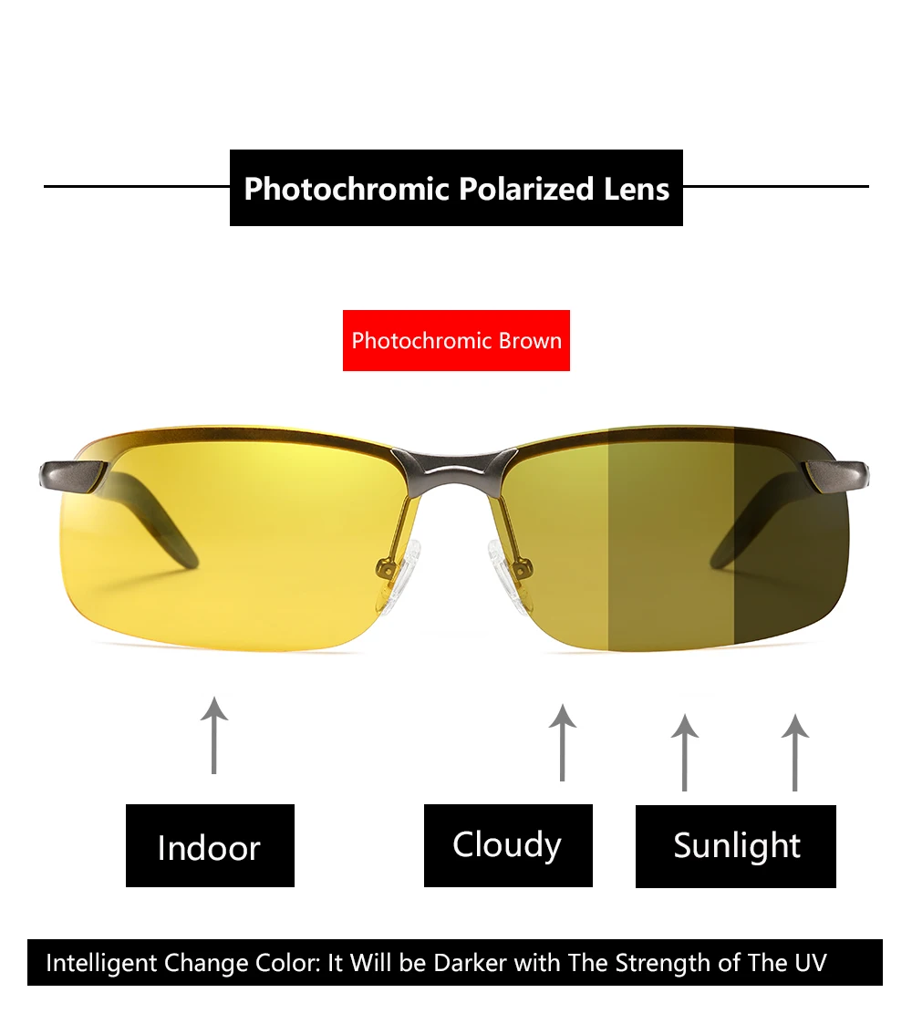 Мужские солнцезащитные очки с антибликовым покрытием UV400 для вождения на открытом воздухе, спортивные фотохромные желтые линзы, поляризационные очки