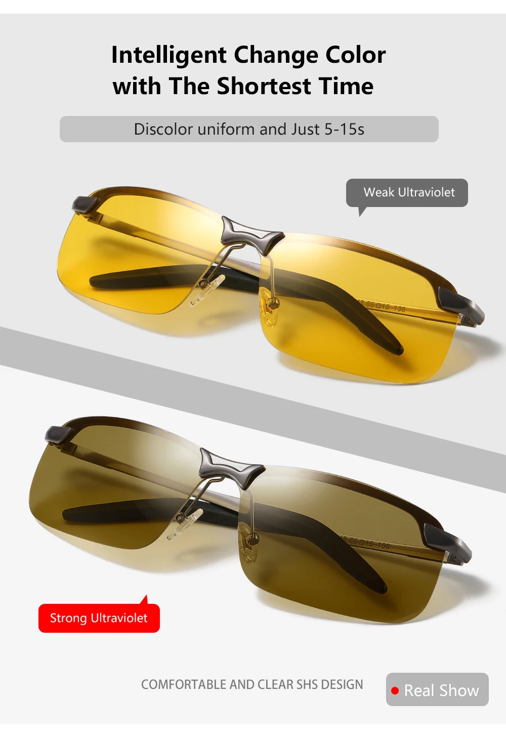 los lentes no son fotocromático, son cómodos para conducir, sobre todo en la noche, no sirven como gafas de sol directo. Me llegó un modelo diferente al comprado en el color del marco, pero cumplen el objetivo.