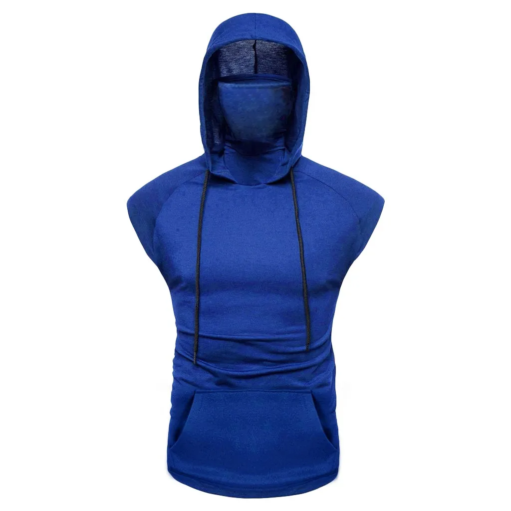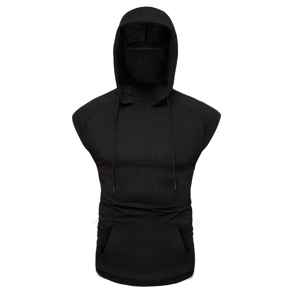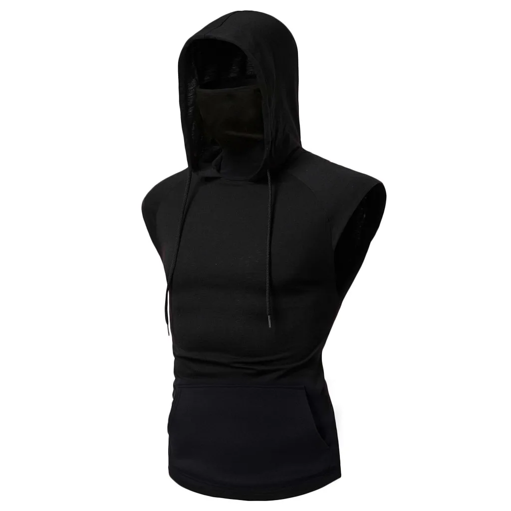 Мужская маска кнопка спортивный жилет с капюшоном с большим открытым вырезом мужской жилет