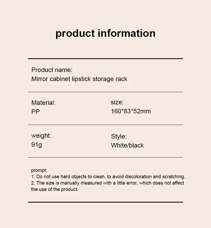 * Подходит для зеркальной глубины шкафа, 45 ° легко брать, вертикальная помада, горизонтальная глазурь для губ.