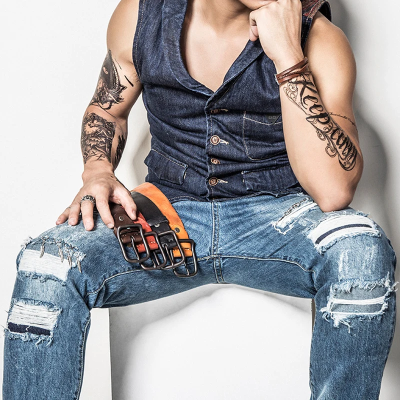 Rugged full grain leather belt man casual vintage belts men genuine...