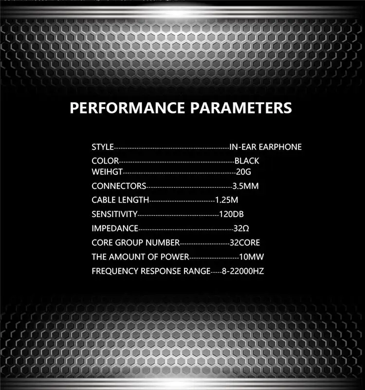 Тип: поршневые наушники-вкладыши Технические данные 1. Материал: металл с ЧПУ цинковый сплав 2. Вес: 20 г 3. Динамик: 9 мм NdFeB динамик 4. Мощность динамика: Номинальная входная мощность: 3 МВт, Максимальная входная мощность: 5 мВт 5. Сопротивление: 32Ω ± 15% 6. Чувствительность динамика: 120 ± 2 дБ (при 1 кГц 1 мВт) 7. Частотная характеристика динамика: 8-22 к Гц 8. Чувствительность микрофона: -42 дБ ± 3 дБ 1 кГц, 3 в 0 дБ = 1 В/Па 9. Рабочая температура: -10 по Цельсию --- + 40 по Цельсию 10. Вес упаковки: прибл. 30 г/1,1 унций 11. Длина кабеля: 1,2 м Функция: воспроизведение/пауза, ответ/выключение, шумоподавление, микрофон Описание: экспресс-доставка Совместимость: Для Xiaomi Tablet1, Tablet 2, xiaomi redmi note1 2 3 Для Samsung Glaxy s6,s7,s6 edge,s7 edge Для Huawei, LG, Sony и других мобильных телефонов android Для iPhone 4 4s 5 5s 6 6s, для iphone 6plus, 6s plus для iPad и т. Д. Для Mp3 Mp4 плееров, планшетных ПК, всех 3,5 мм музыкальных плееров.