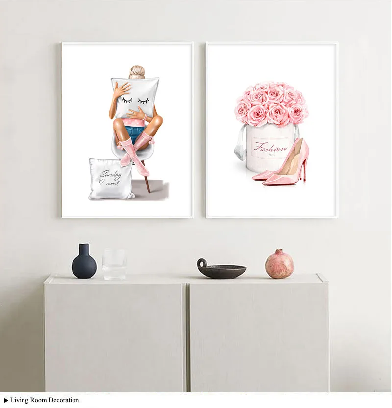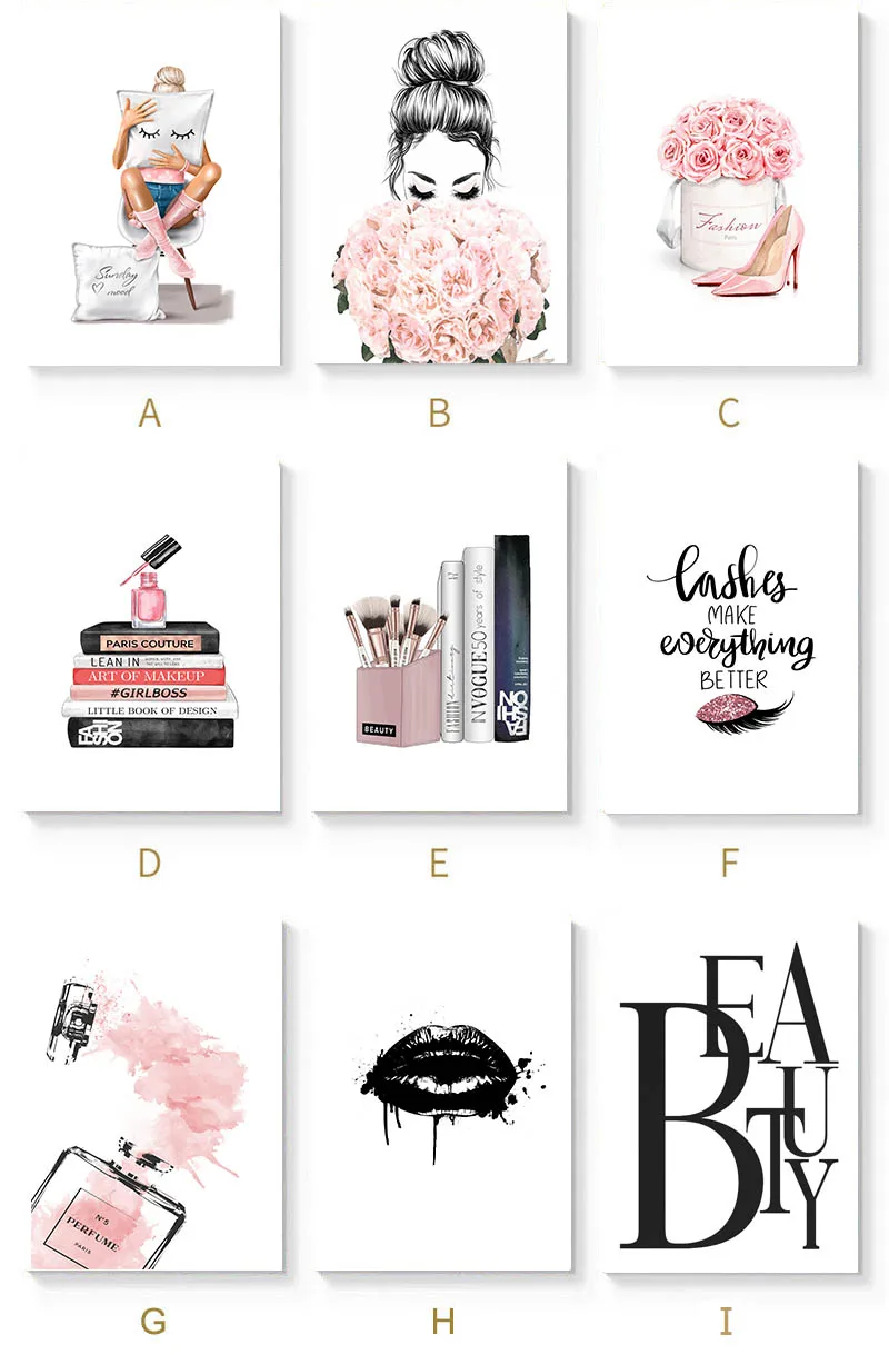 Розовый цветок духи модный постер ресницы Губы Макияж Печать холст ...