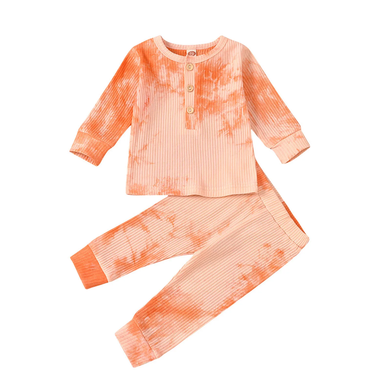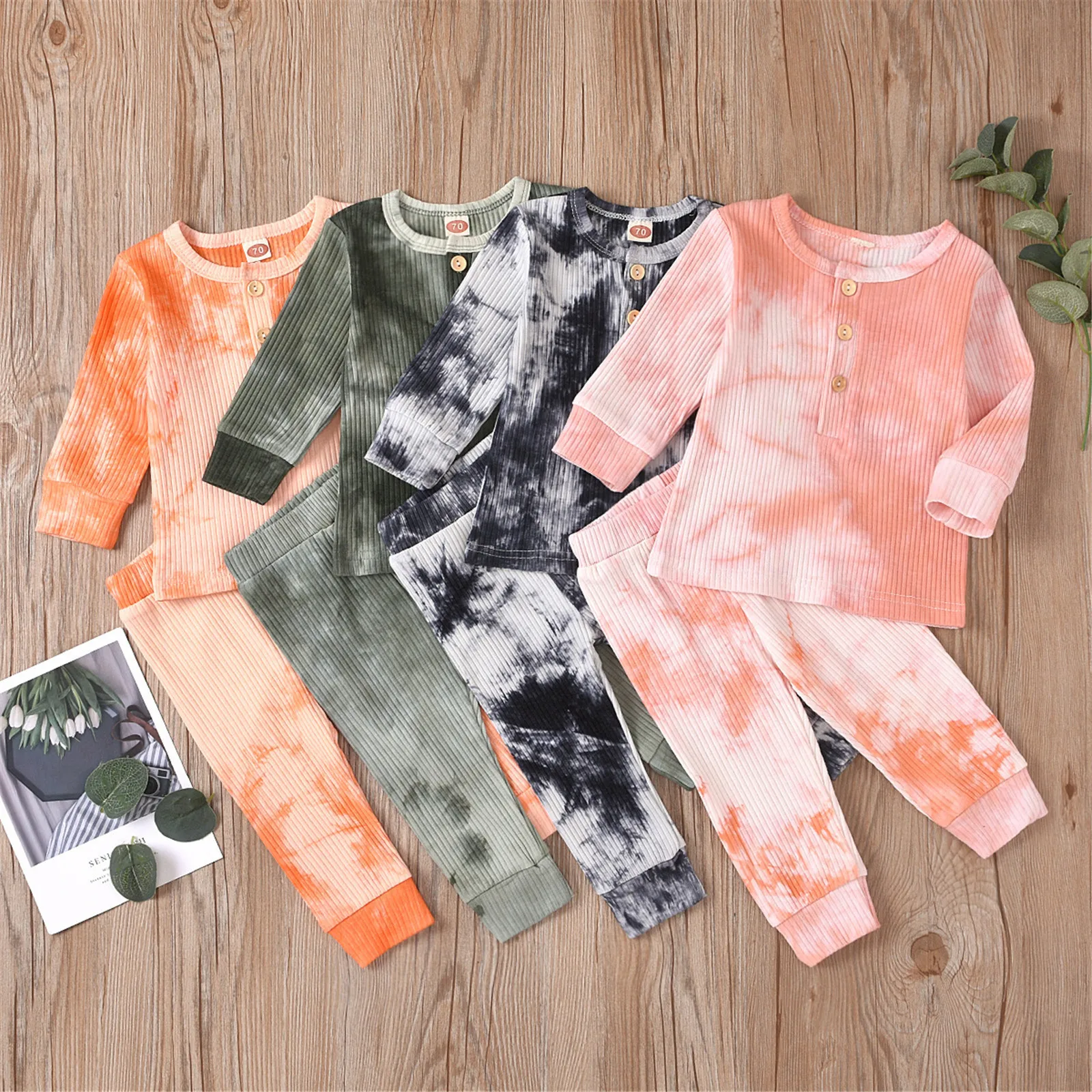 Детская Одежда для новорожденных мальчиков и девочек с длинными рукавами и галстуком-бабочкой из крашеной топы, штаны костюм из двух предметов, 6, 12, 18, 24 месяцев, 3 лет Детские meisjes kleding