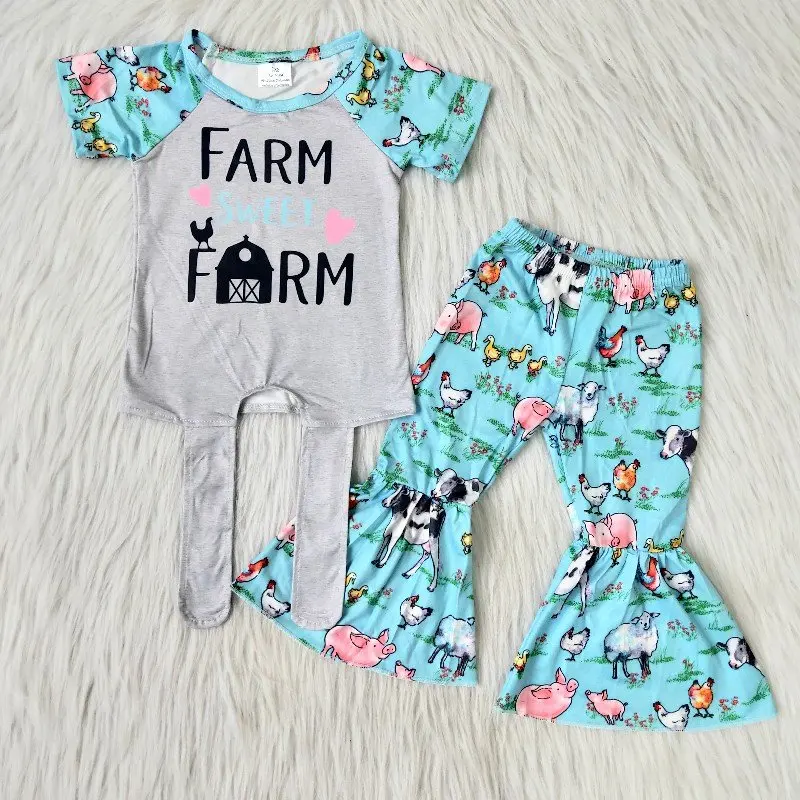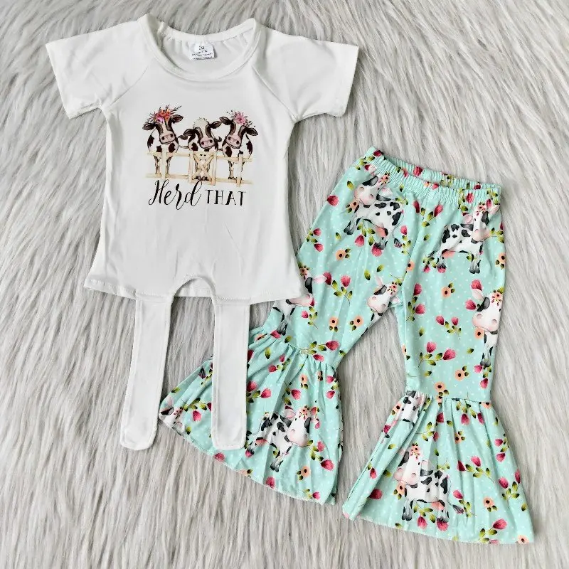 Эксклюзивная одежда для маленьких девочек Peace Love Farmlife, рубашка с коротким рукавом и красной завязкой, штаны с коровьим поясом, Детские комплекты, детская одежда