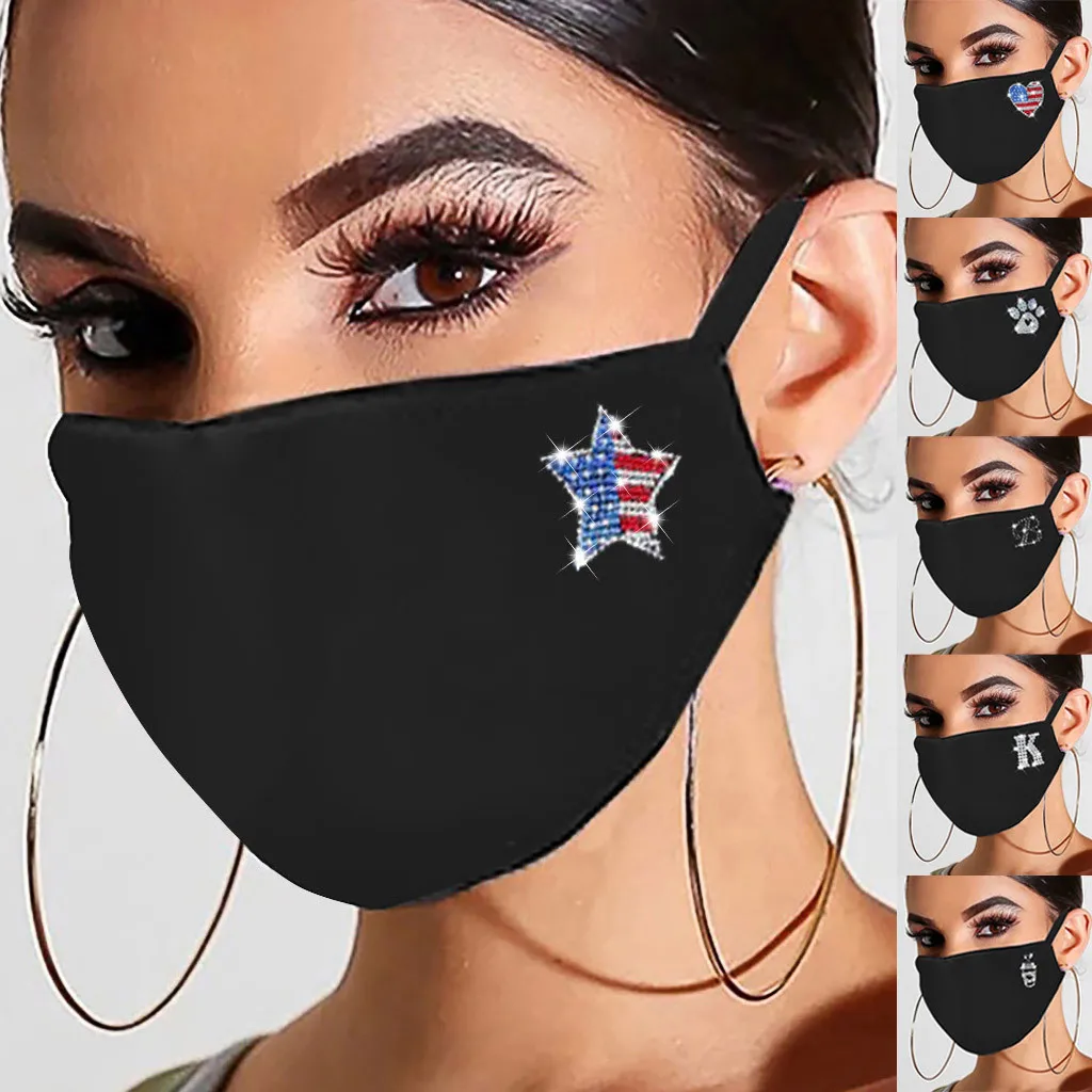 Маска Стразы Женская многоразовая, хлопковая Пылезащитная, с буквенным принтом и защитой от ветра