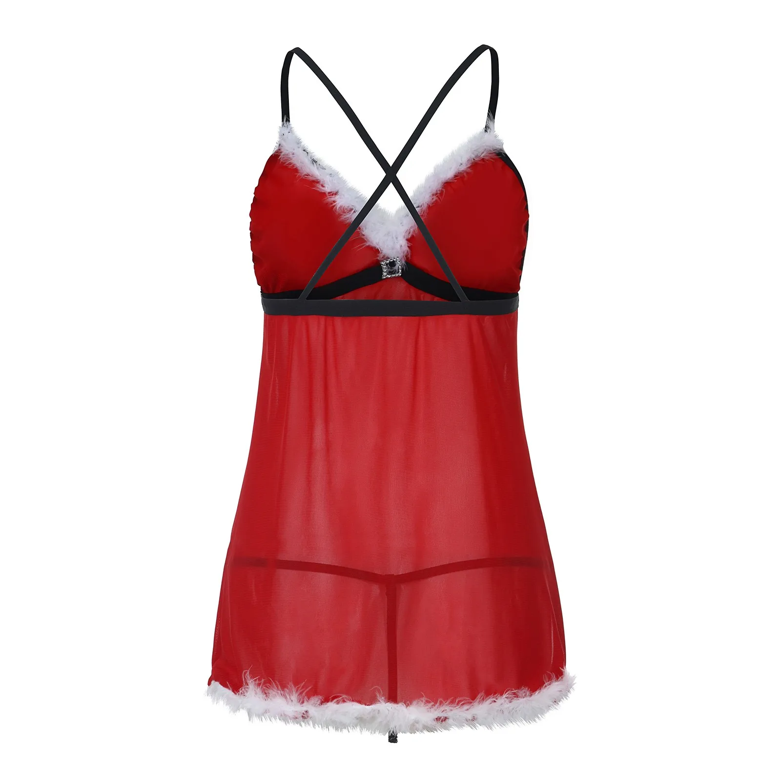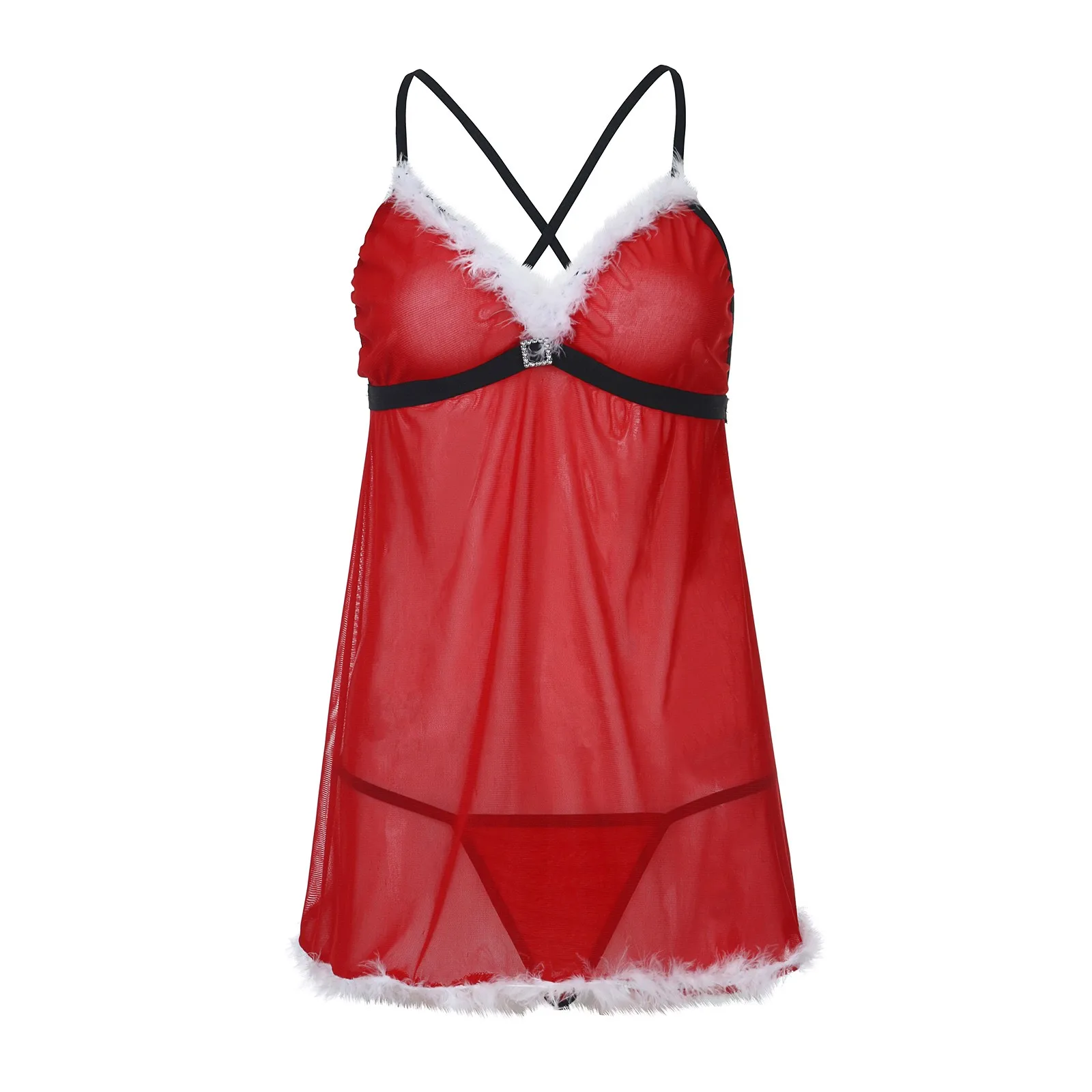 Сексуальное женское белье, эротическое рождественское кружевное меховое платье, стринги, комплект нижнего белья, сексуальная пижама с открытой спиной, одежда для сна, новинка, женское белье