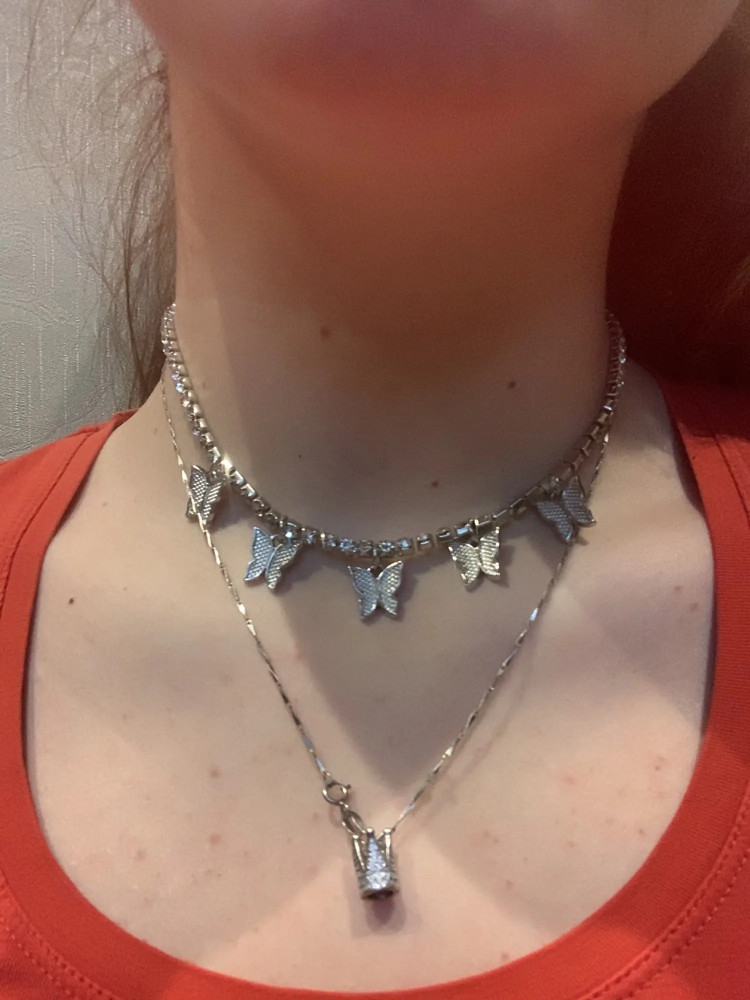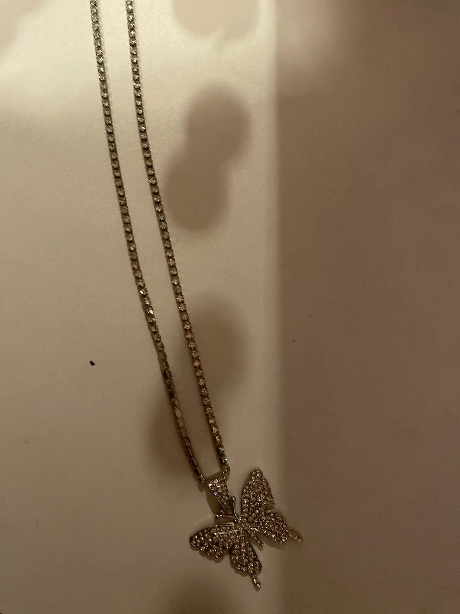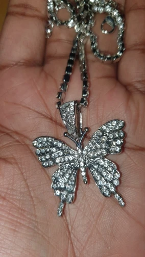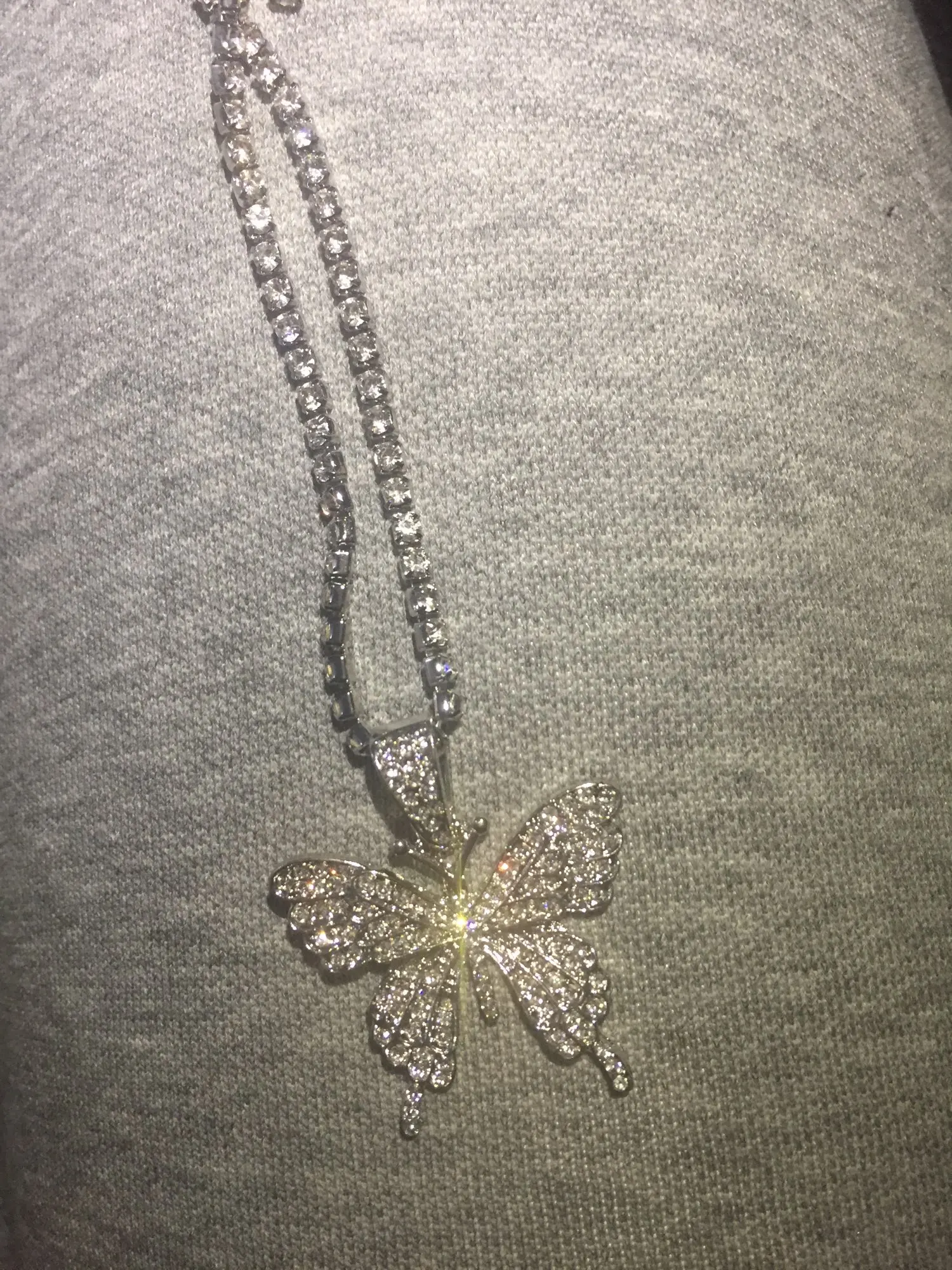 я думала сама Бабочка будет огромная она средняя.мне все равно нравится.бабочка супер блестит всего 2камушка не было в цепочке а так идеально на бабочке все камни целы.замочек на цепочке я сразу на новый поменяла потому что она не закрывалась . только за это минус балл а так все супер.