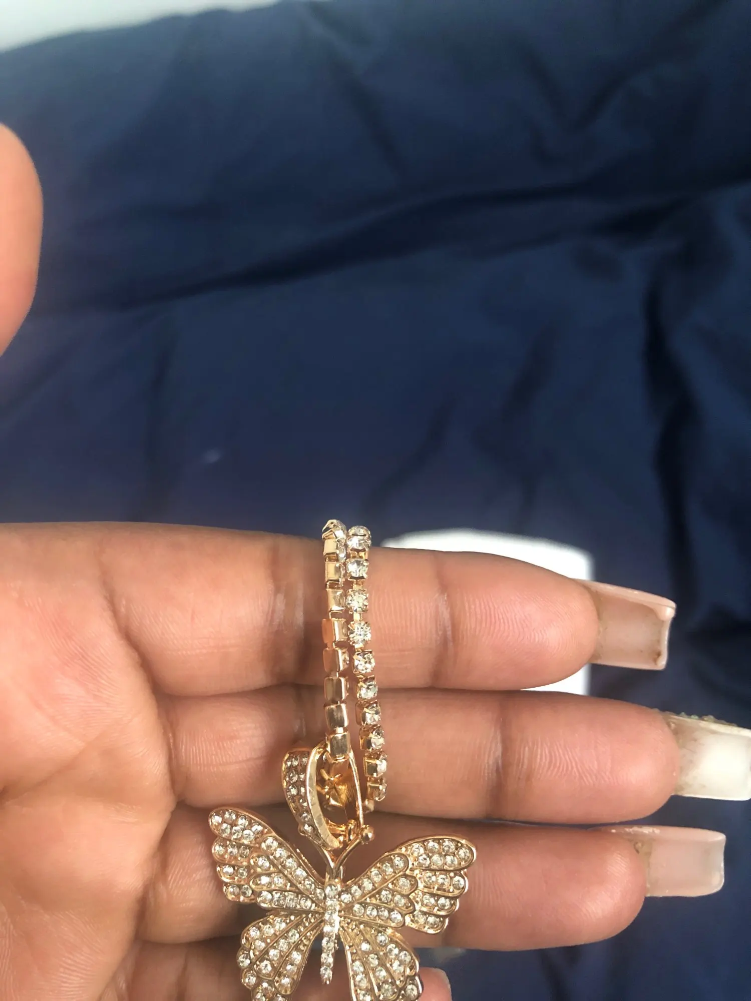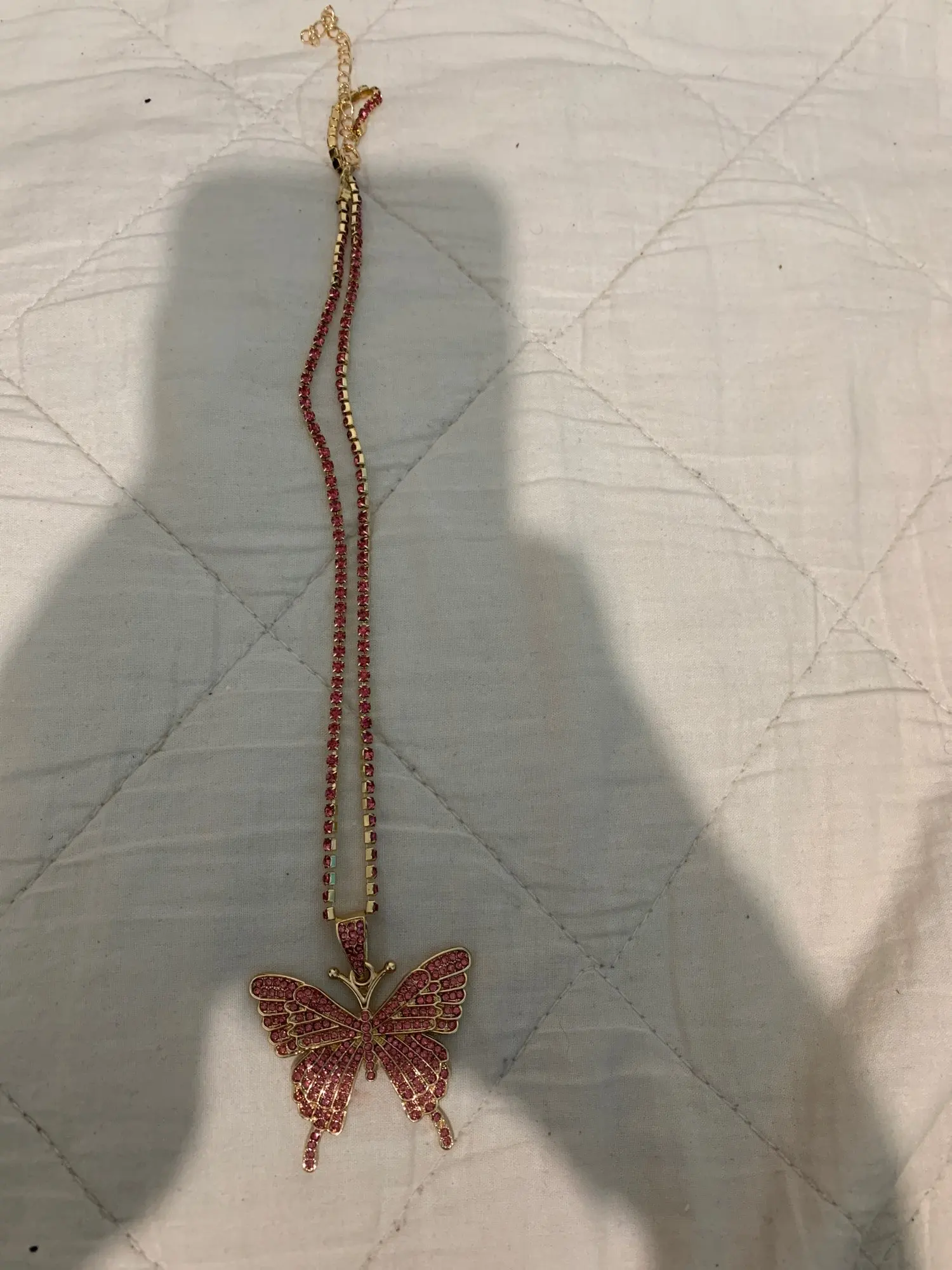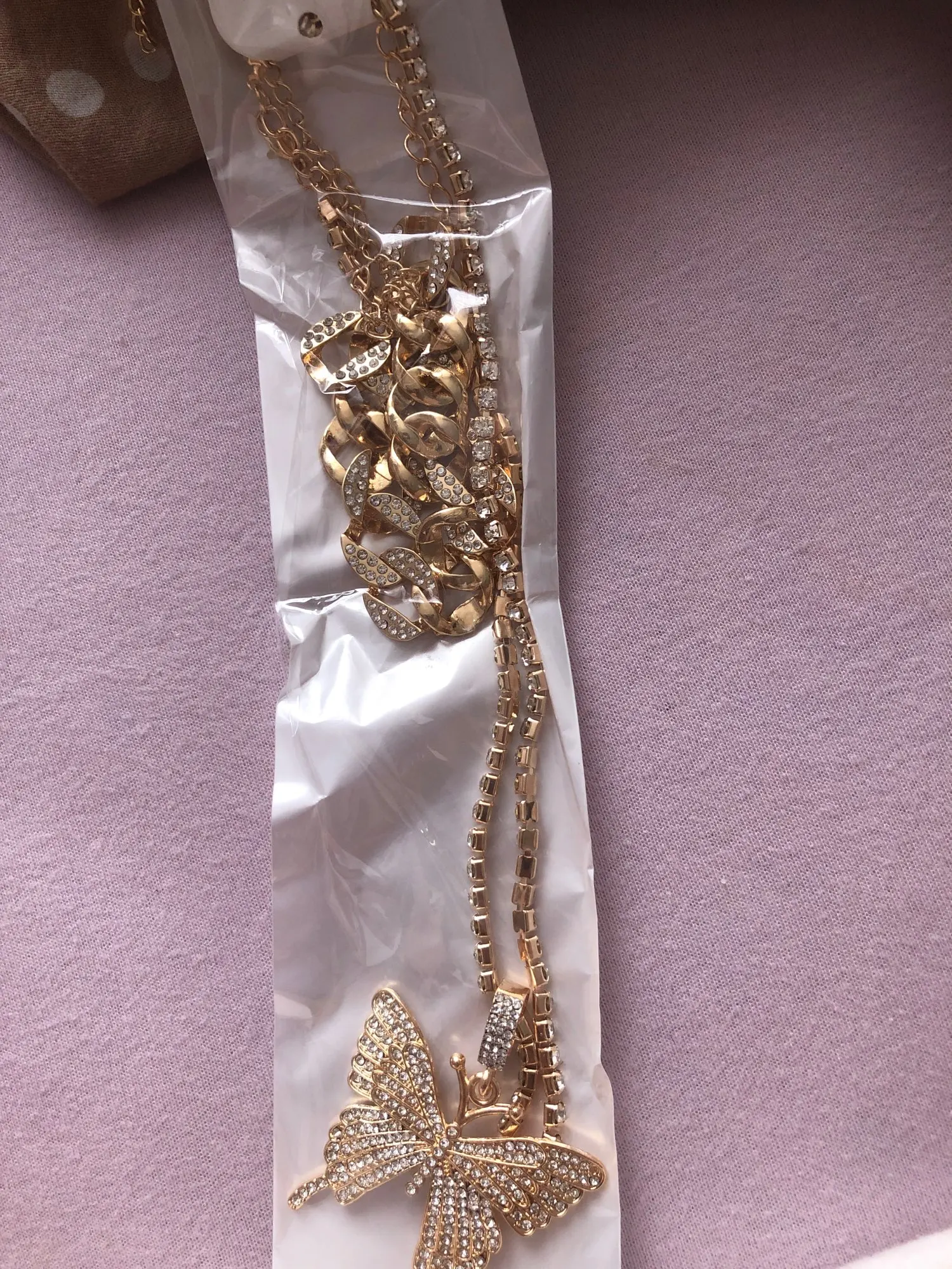 я думала сама Бабочка будет огромная она средняя.мне все равно нравится.бабочка супер блестит всего 2камушка не было в цепочке а так идеально на бабочке все камни целы.замочек на цепочке я сразу на новый поменяла потому что она не закрывалась . только за это минус балл а так все супер.