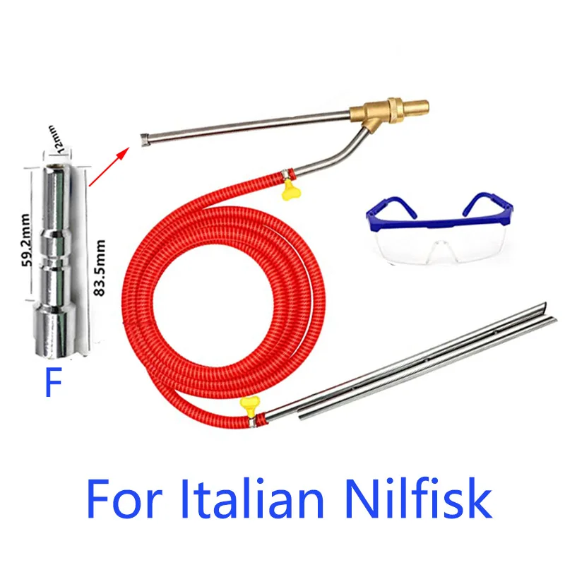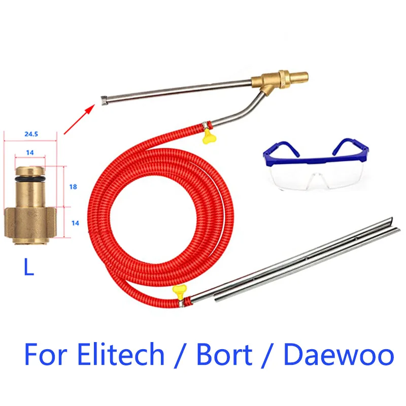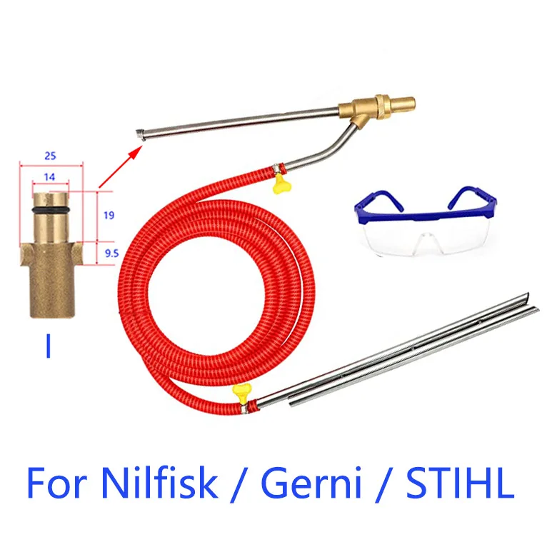 Пескоструйные насадки для мойки под давлением имеют очки, 10 'шланг, 16 ''палочка для мойки под давлением (вход для воды), 17'' пескоструйная палочка (вход для песка) и два хомута для шлангов.