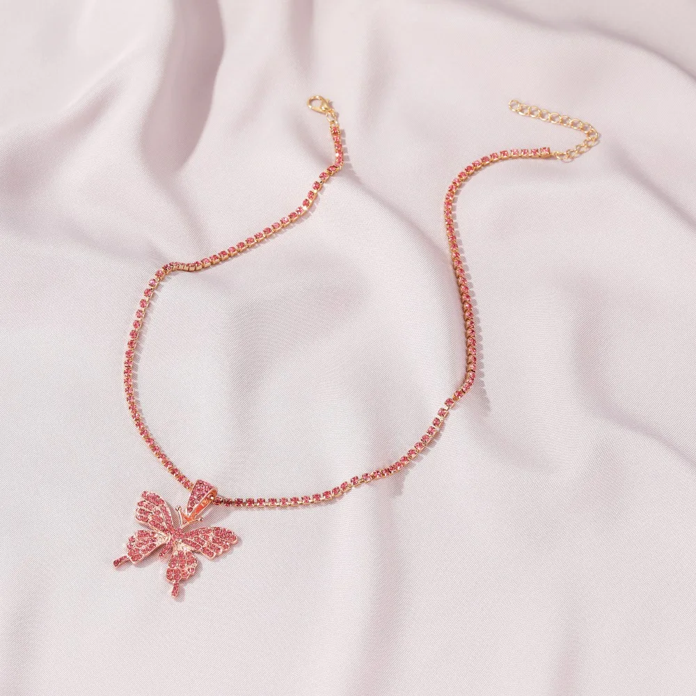 Ожерелье с подвеской в виде бабочки, золотистого и серебряного цвета, Женская Блестящая цепочка для ключицы с кристаллами, модные вечерние ювелирные изделия нового дизайна, подарок