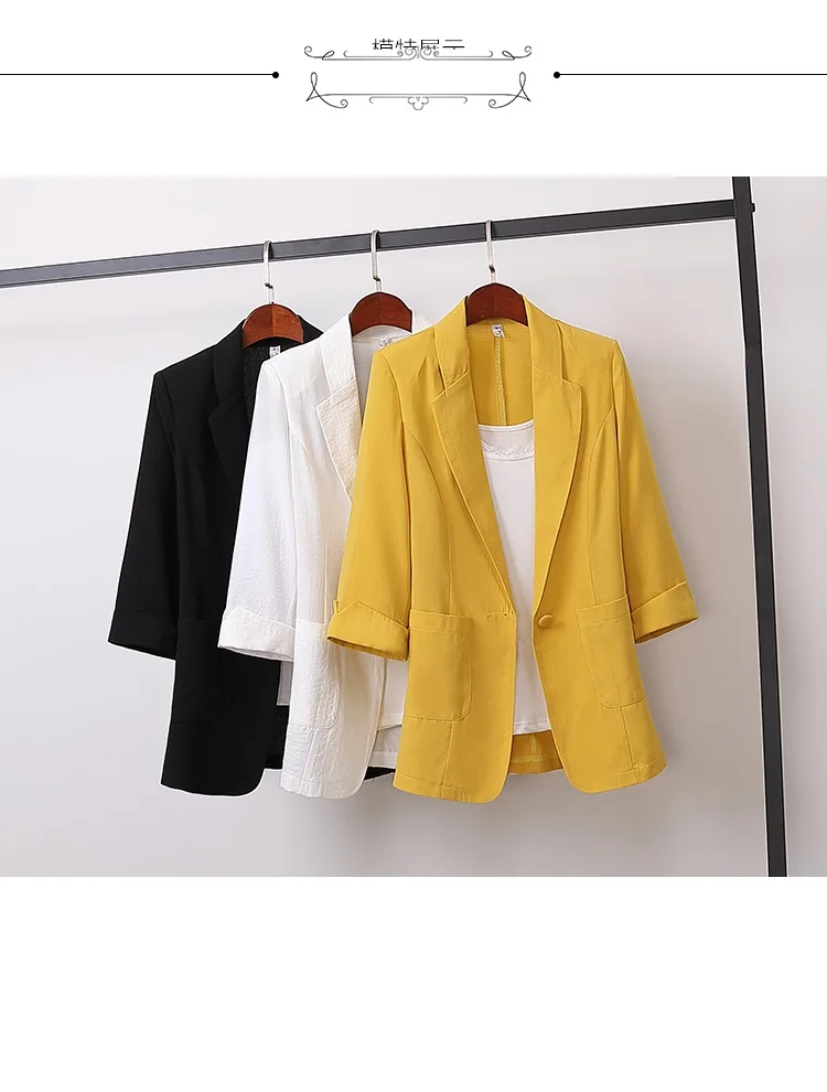 Женский хлопковый льняной пиджак размера плюс 5XL, летние тонкие куртки для офиса 2020, свободные блейзеры, однотонные женские костюмы, пальто