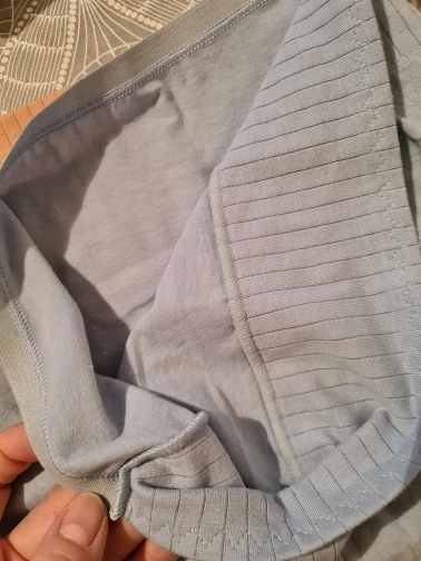 Плотный хлопок. Цвет с отливом в оливковый. Спереди широкая резинка, внутри которой вшита обычная бельевая резинка, сзади резинка пришившая. Ластовица из хлопка серого цвета, швы ровные, качество отличное. На мои бёдра L 90 сел плотно, меньше или больше не надо. Но обратите внимание, они как шорты, то есть закрывают всю попу сзади полностью. Думаю, куплю ещё в других цветах