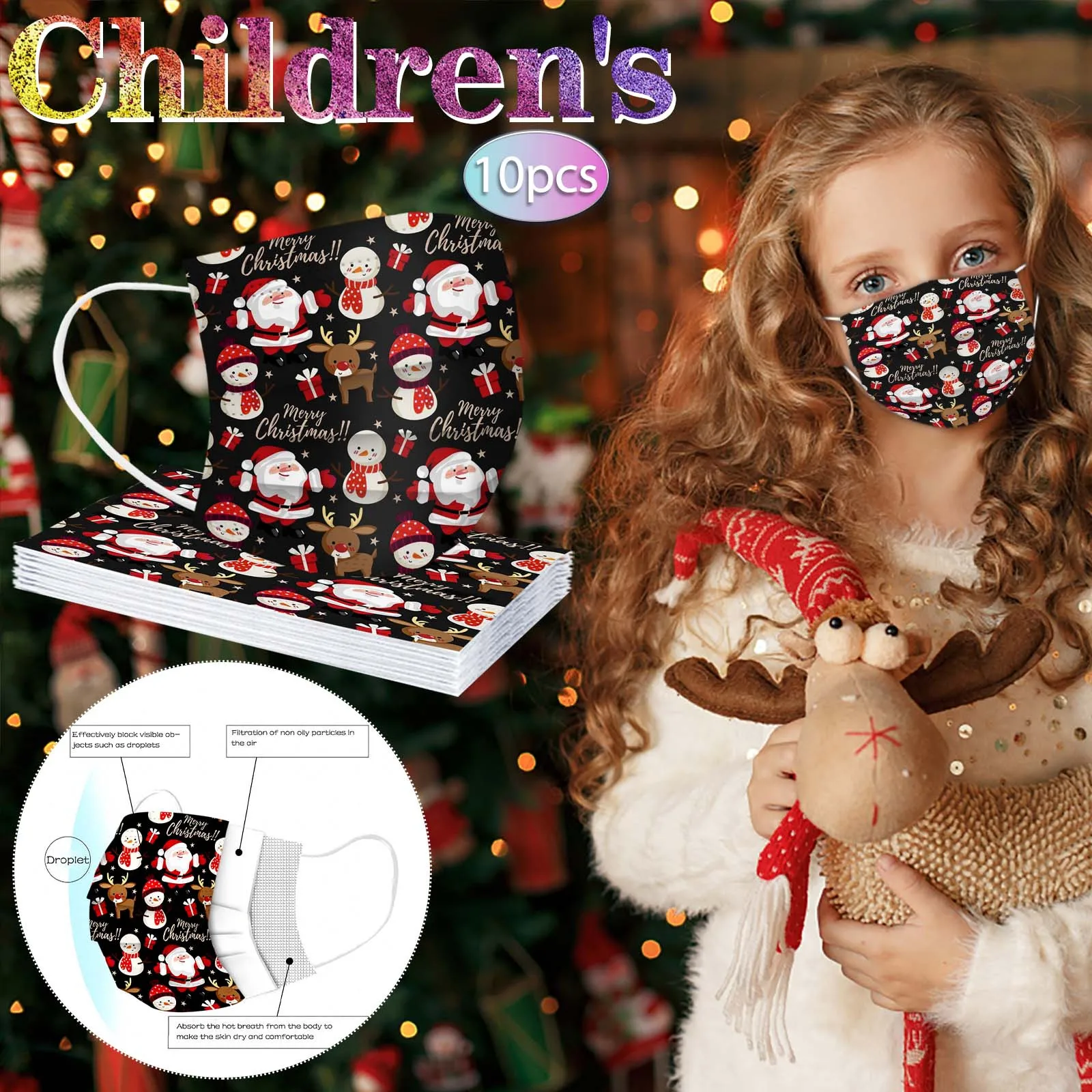 10 шт., одноразовые маски для лица с принтом, для мальчиков и девочек