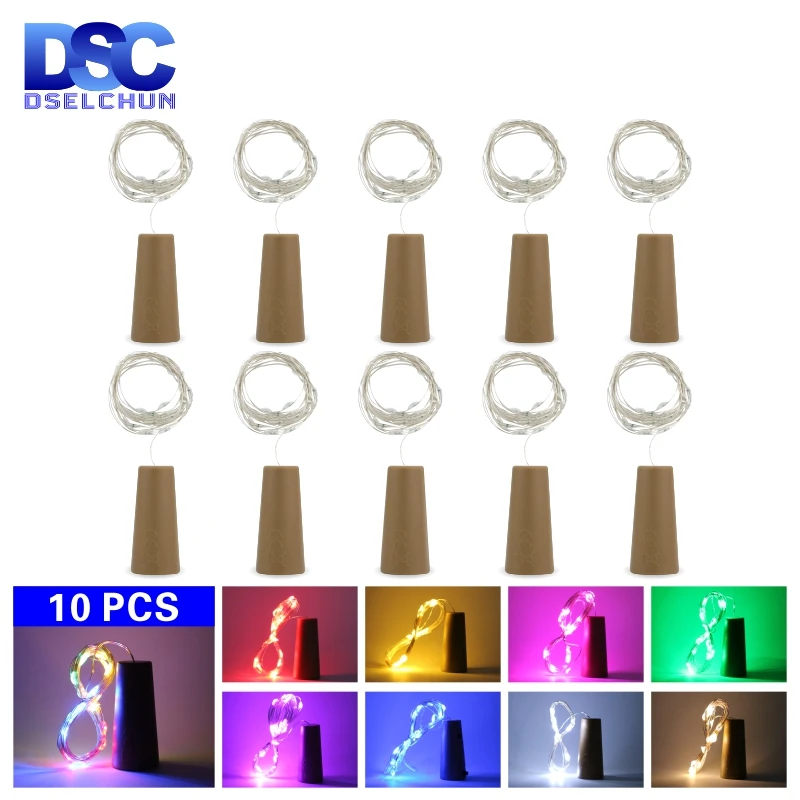 10 шт. светодиодные светильники в форме винных бутылок 2 м 20LEDs в форме пробки медная проволока Красочные струнные светильники для внутреннего использования на открытом воздухе Свадебные Рождественские огни