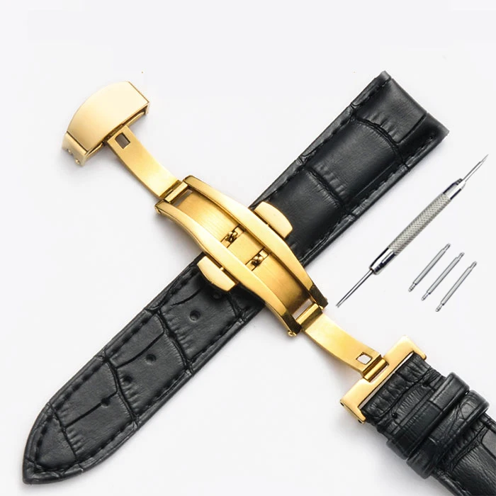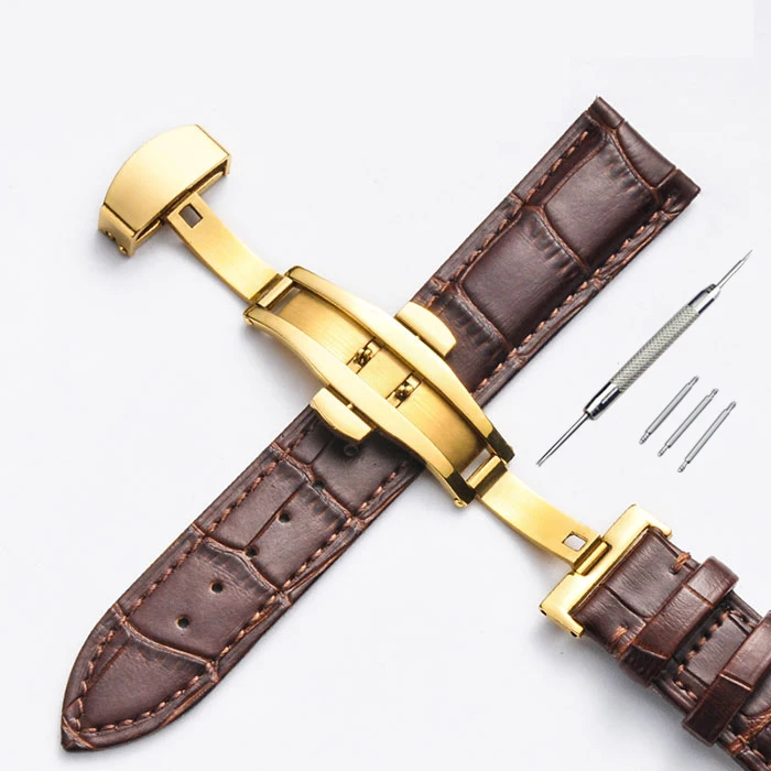 Ремешок для часов с узором бабочки из натуральной кожи раскладывающаяся Пряжка браслет коричневый черный ремешки для часов 12-24 мм