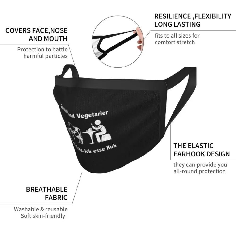 Маска для лица секонд-хенд Вегетарианская корова ест траву я еду корова на немецком языке лучший подарок Забавный принт многоразовая веганская маска для лица