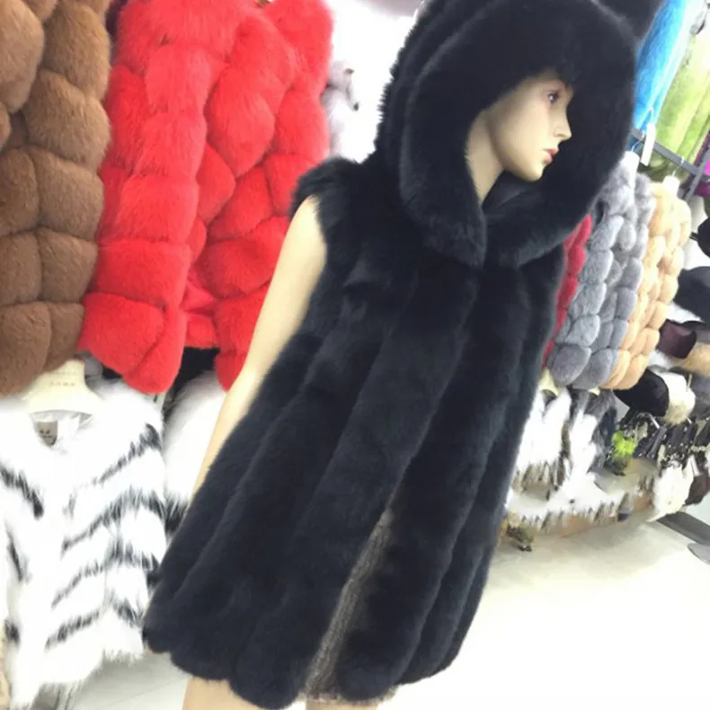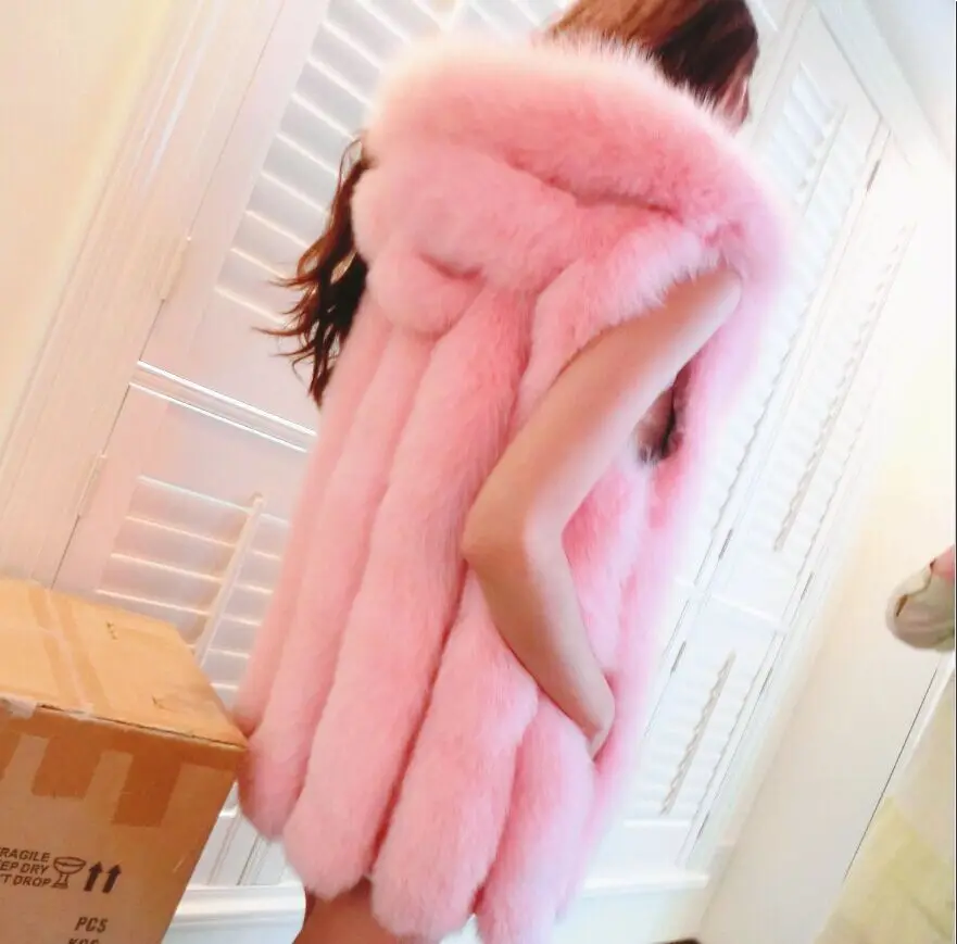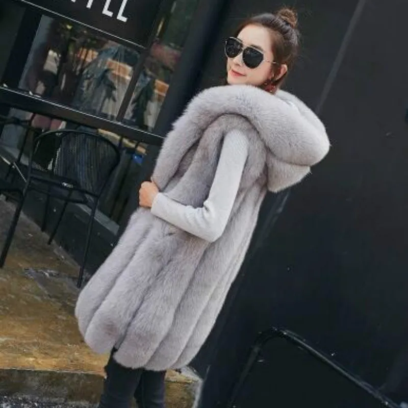 Осень-зима 2020, модный Женский Повседневный меховой жилет без рукавов из искусственного меха, куртка оверсайз из искусственного меха с капюшоном, женская верхняя одежда
