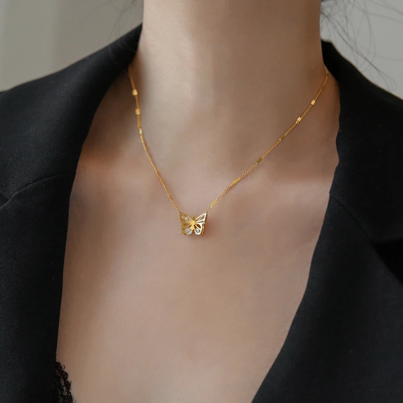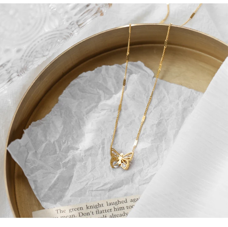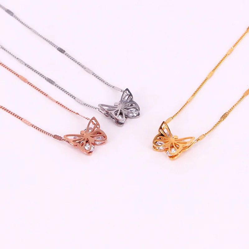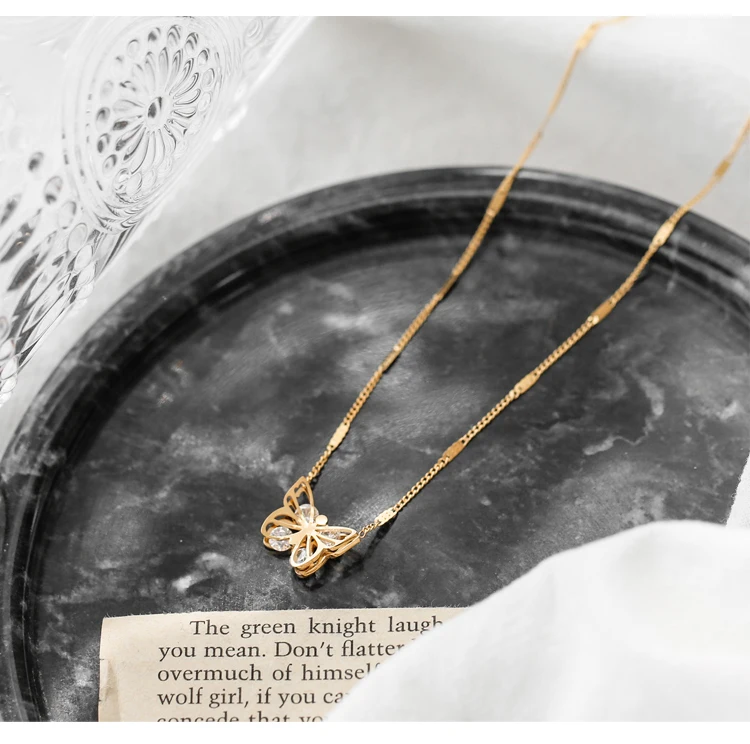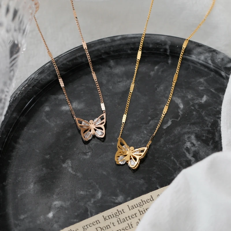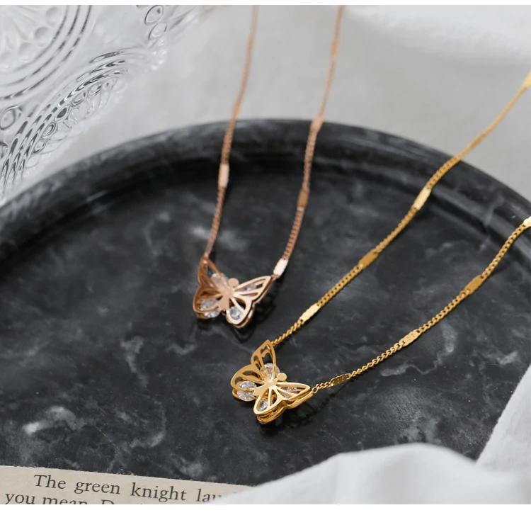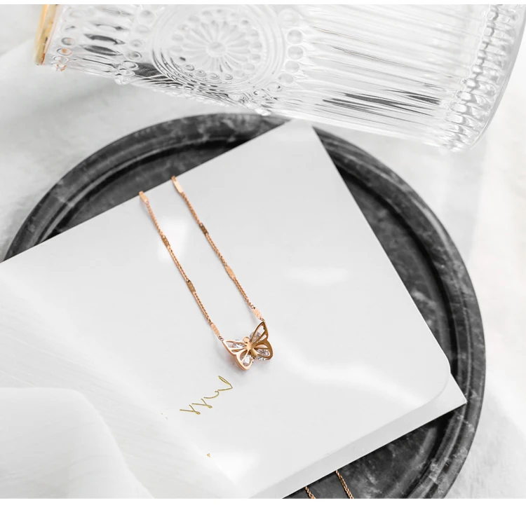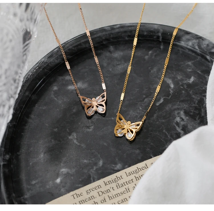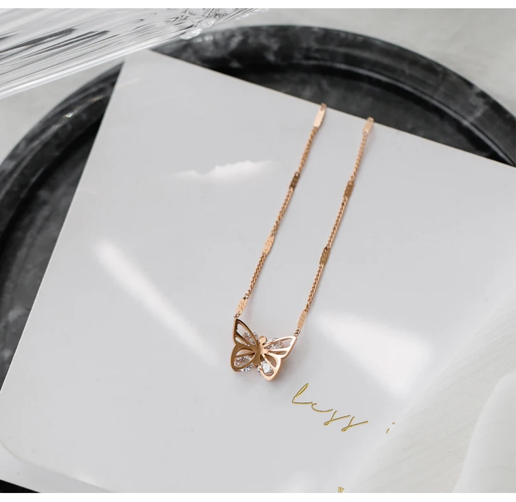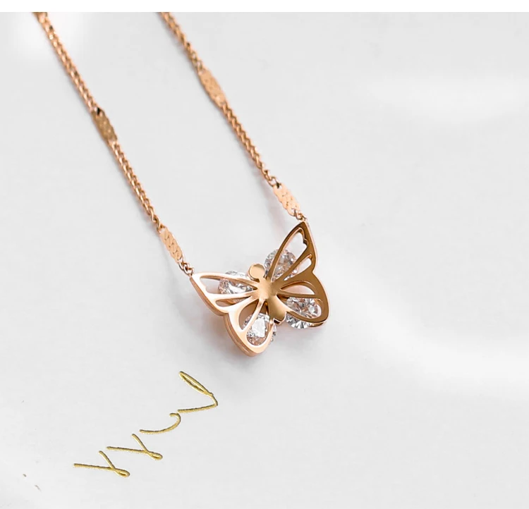 YUN RUO не выцветает, винтажное позолоченное ожерелье с подвеской-бабочкой с кристаллами, модные ювелирные изделия из титановой нержавеющей стали, женские аксессуары