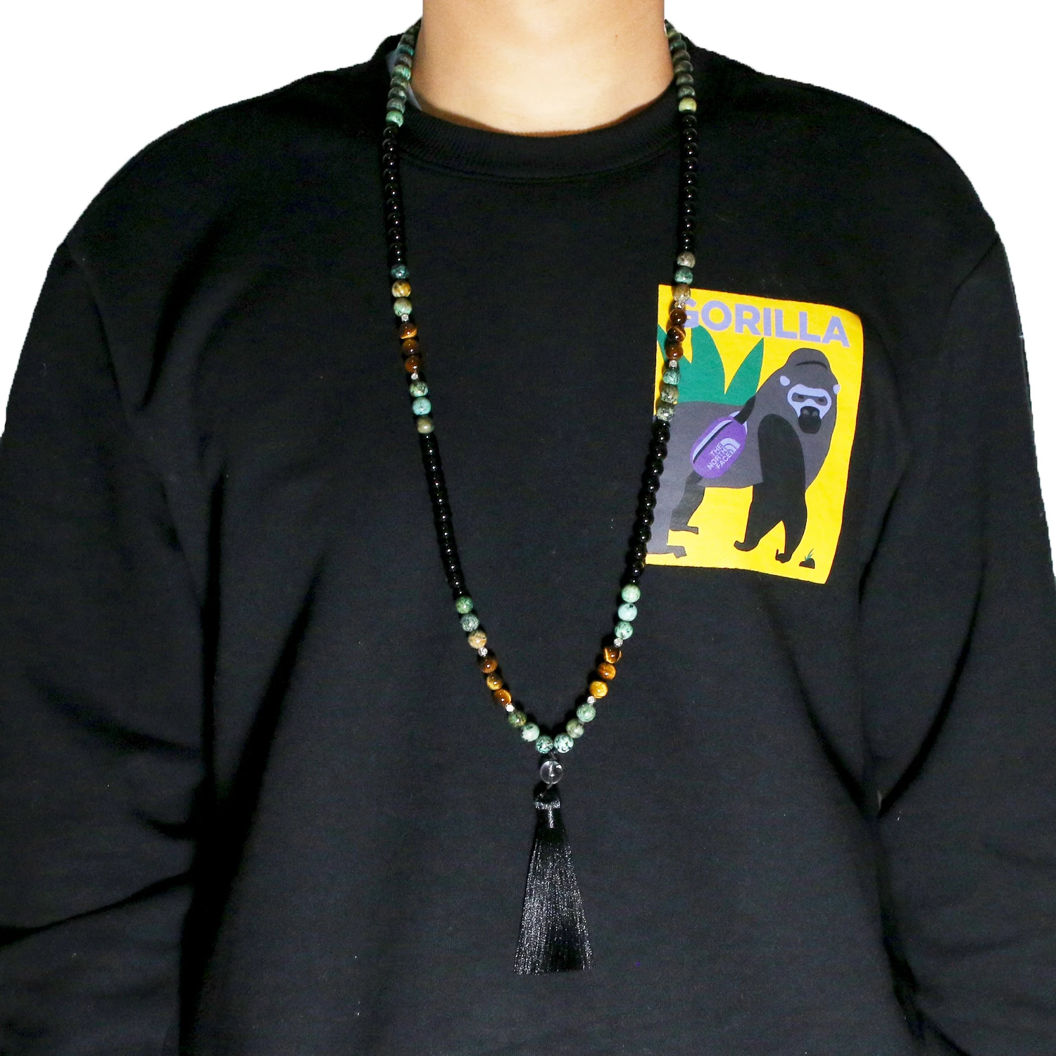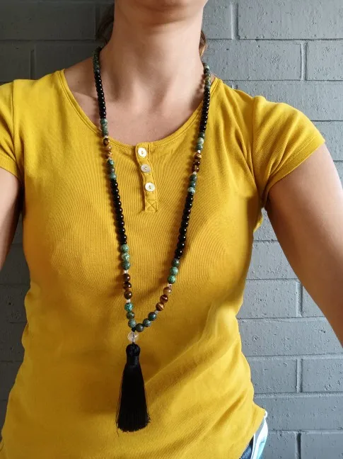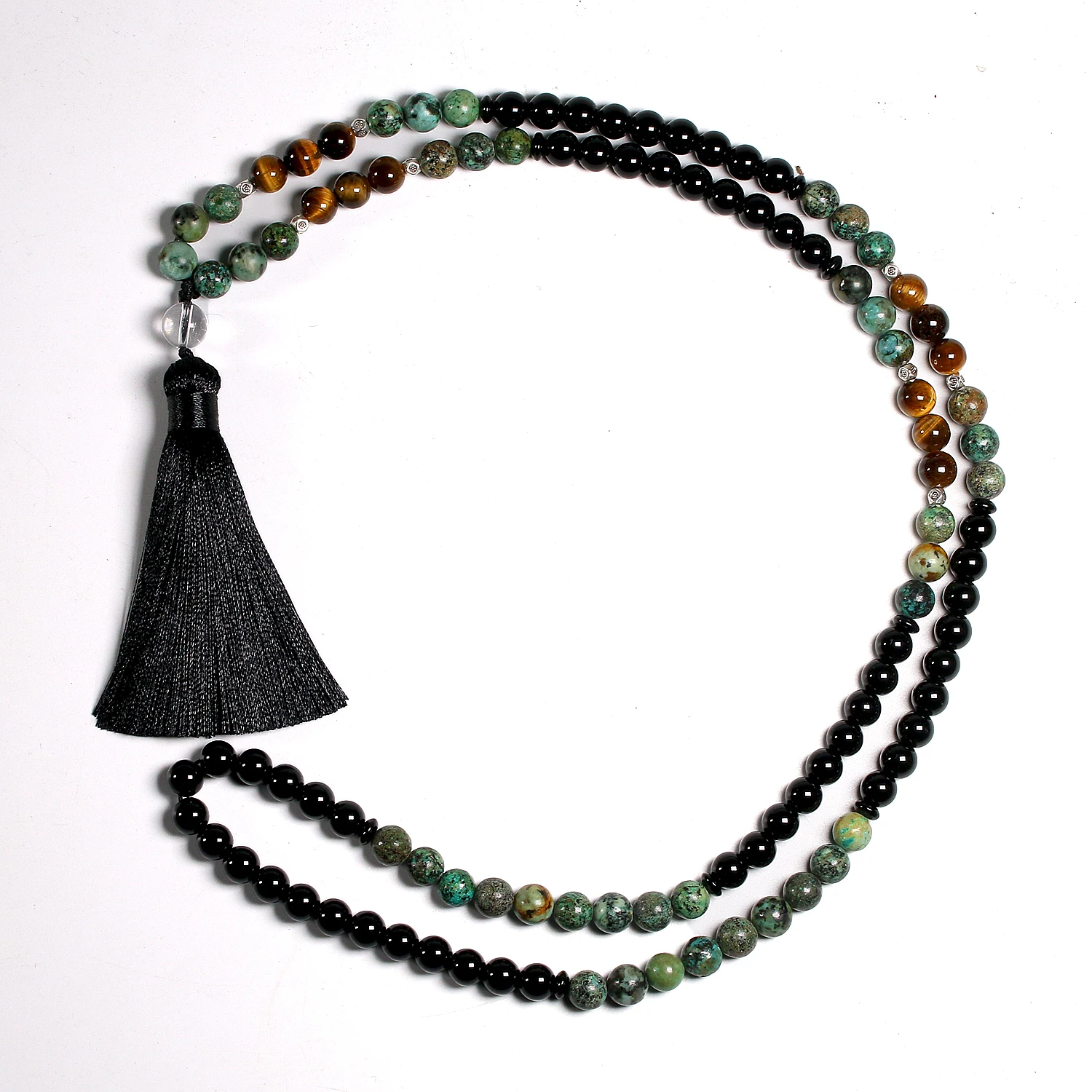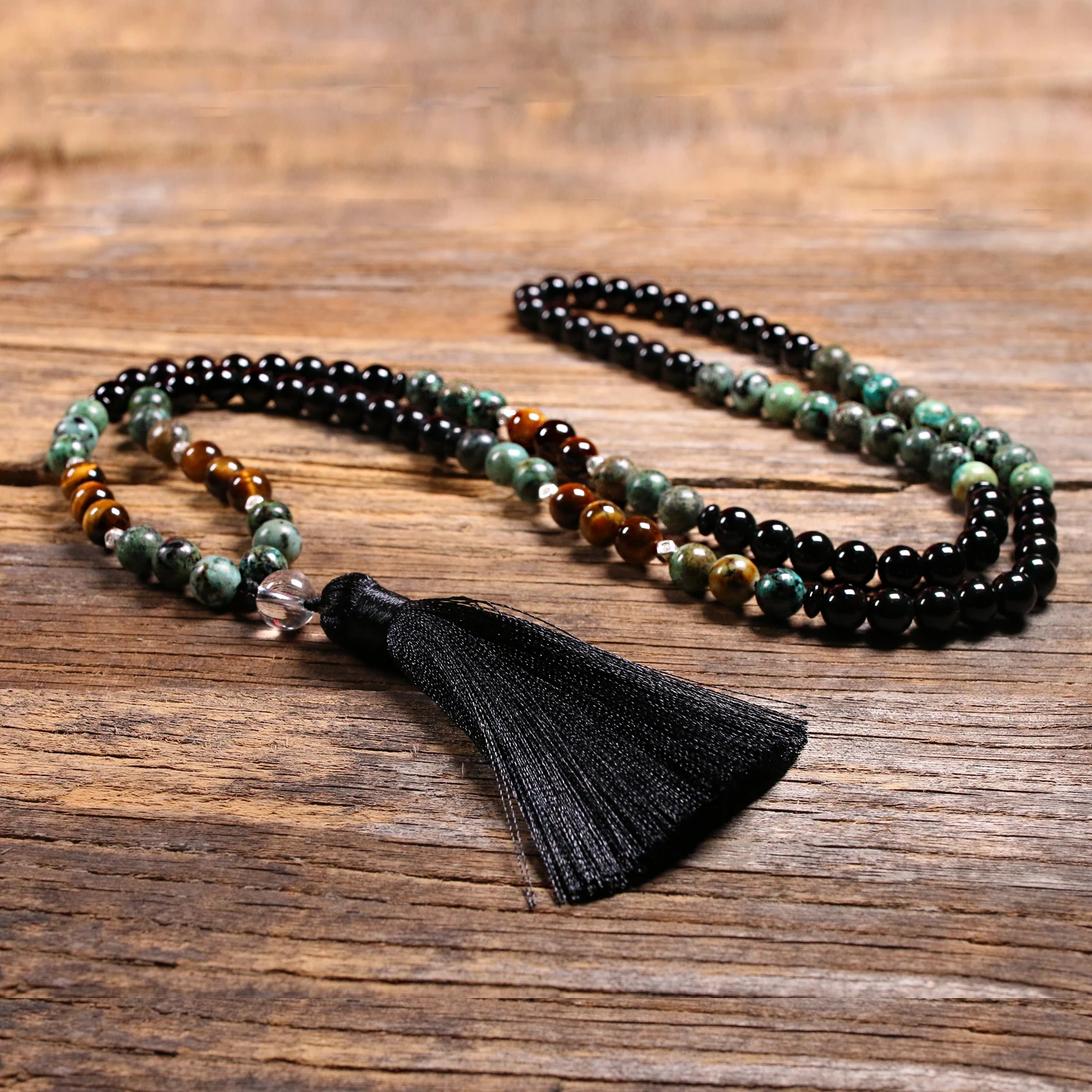 Ожерелье с натуральными тигровыми глазами для женщин и девушек, длинное ожерелье с кисточками из 108 камней Japa Mala, с бусинами для йоги, 8 мм