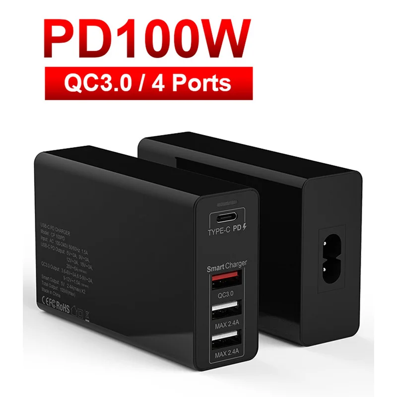 AC 100-240 В пер. тока, 50/60 Гц, 1.5A USB Type c PD outptut:5 В/3A,9 В/3A,12 В/3A,15 в/3A,20 в/5A (100 Вт макс.) PPS ток на выходе: 3,3-21V 5A QC3.0 ток на выходе: 3,6 V-6,5 V/3A, 6,5 V-9V/2A,9-12 В/1.5A (18 Вт) Выход USB: 5 В/2,4 A x 2
