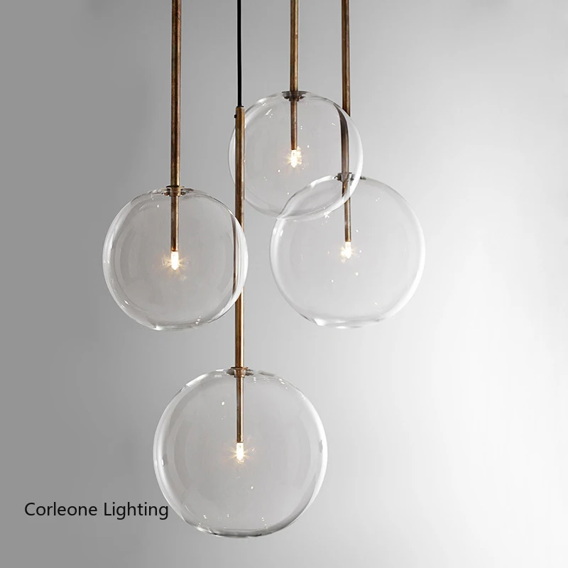 Подвесная лампа в скандинавском стиле, освещение в виде шара из прозрачного стекла для столовой, спальни, декоративные осветительные приборы для гостиной