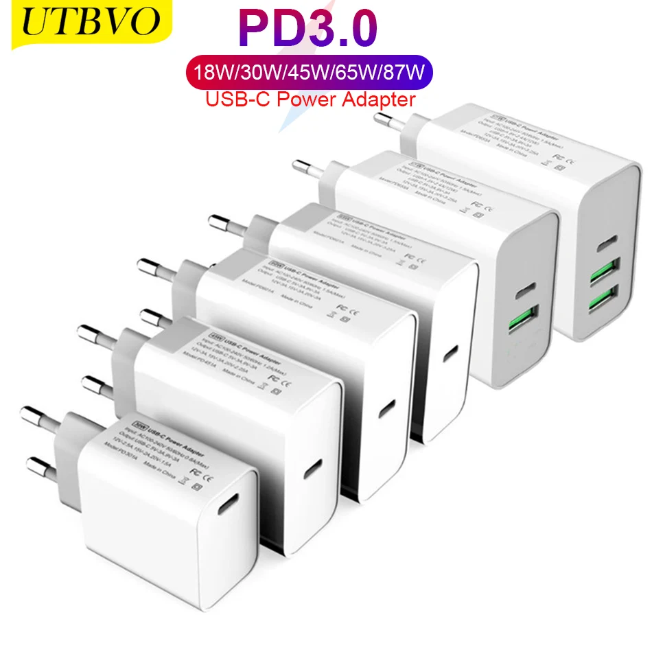 UTBVO TYPE-C USB-C адаптер питания 30 Вт 45 Вт 60 Вт 65 Вт 87 Вт QC3.0 PD зарядное устройство для ноутбуков Xiaomi USB-C MacBook Pro/Air iPhone iPad Pro