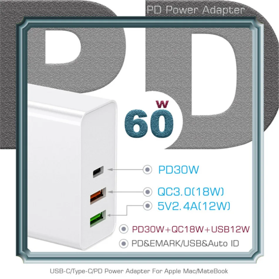 Зарядное устройство Type-C для USB-C ноутбуков/MacBook /iPad/iPhone/Samsung Galaxy, Pixel и многое другое PD зарядное устройство для нового MacBook Pro/Air iPhone/iPad Pro Поддержка PD протокола быстрой зарядки и другого оборудования PD3.0 сотовый телефон QC TYPE-C USB зарядное устройство для MacBook Pro / DELL XPS 12/13 / Samsung Note 8 S9 S10